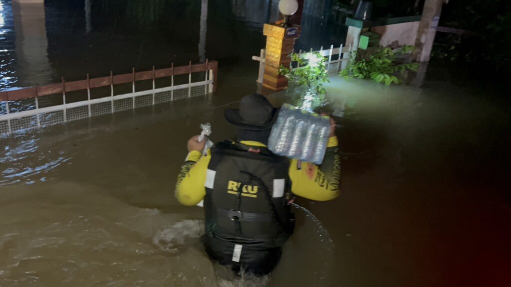 วันที่ 29 กันยายน 2565 : มูลนิธิร่วมกตัญญู โดย ดร.รัตนา สมสกุลรุ่งเรือง ประธานมูลนิธิฯ ได้สั่งการให้ นายสมศักดิ์ ปาลวัฒน์ ผู้จัดการมูลนิธิฯ เร่งรัดจัดทีมกู้ภัยร่วมกตัญญู นำเรือท้องแบน และ จัดเตรียมสิ่งของช่วยเหลือผู้ประสบภัย ถุงยังชีพ-น้ำดื่ม เดินทางไปช่วยเหลือในพื้นที่ประสบอุทกภัย ที่ได้รับผลกระทบจาก พายุ “โนรู”