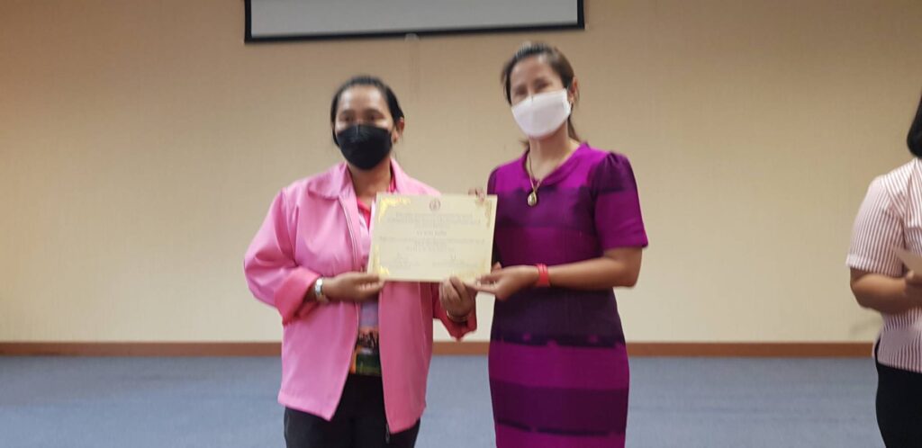 ในการจัดอบรมและพิธีมอบใบประกาศเกียรติคุณ ที่ตึก ดิน สอ. ม.ราชภัฏกาญจนบุรี โดยมีประธานในพิธี อ.ศิริรัตน์ เซ็งเส็ง ผู้ประสานงาน นางศยามน ชมกโชค ประธาน อมม. ต.ท่ามะขาม อ.เมือง จ.กาญจนบุรี