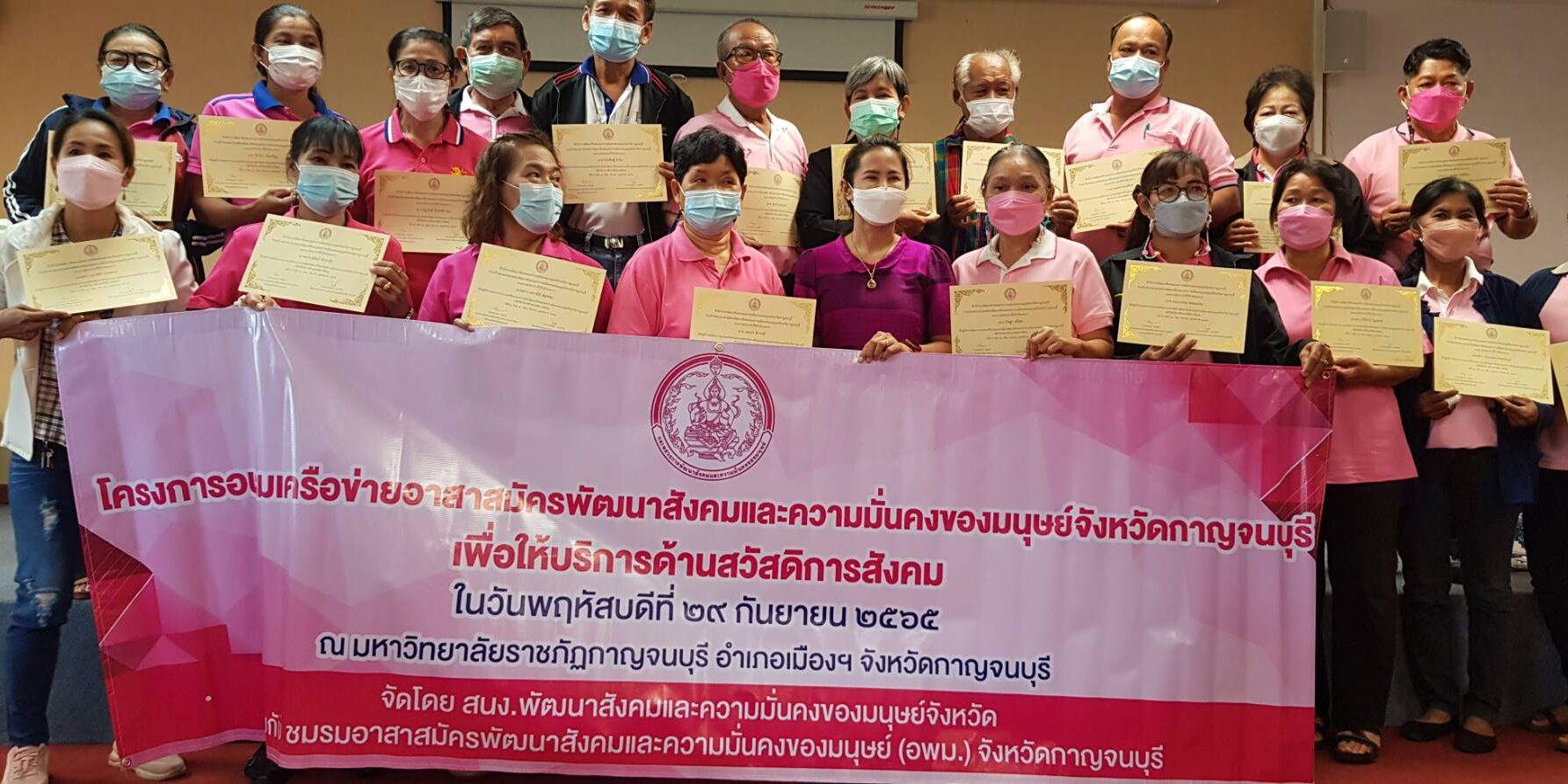 คุณดาวกมล บำเพ็ญพล เจ้าหน้าที่ดูแลอาสาสมัครพัฒนาสังคมและความมั่นคง ได้จัดอบรม โครงการอบรมเครือข่ายอาสาสมัครพัฒนาสังคมและความมั่นคงของมนุษย์ (อพม.) จังหวัดกาญจนบุรี