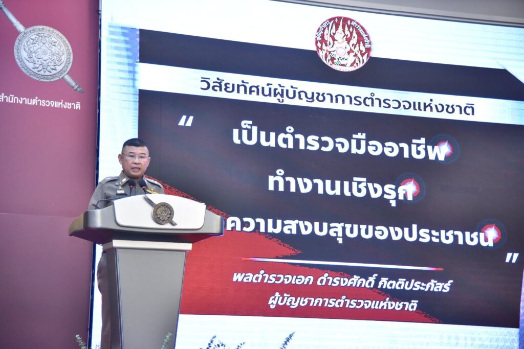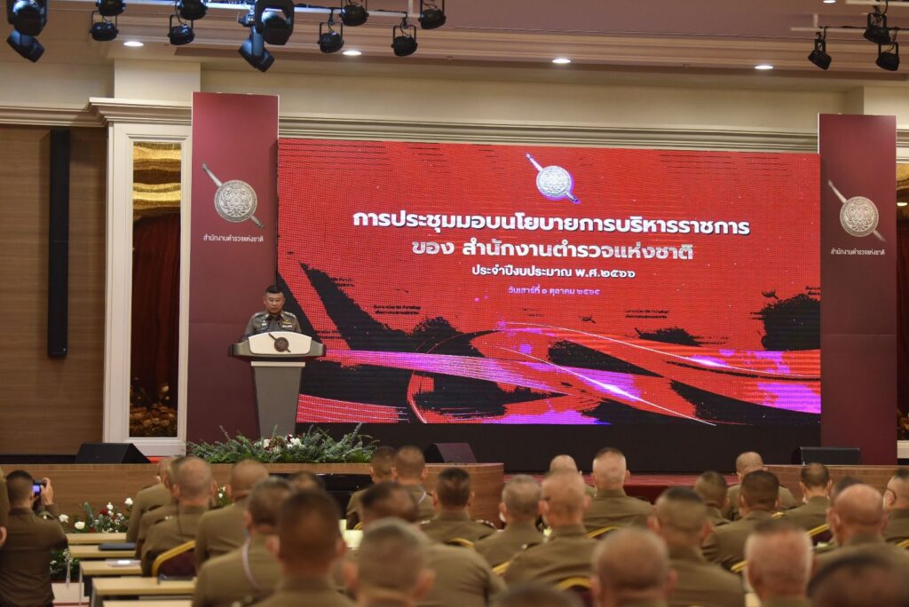 วันที่ 1 ต.ค.65 ที่สำนักงานตำรวจแห่งชาติ (ตร.) : พล.ต.อ.ดำรงศักดิ์ กิตติประภัสร์ ผบ.ตร. เข้ารับตำแหน่งวันแรก พร้อมเชิญข้าราชการตำรวจ ตั้งแต่ รอง ผบ.ตร.- ผบก. จำนวน 250 นาย เข้ารับฟังนโยบายการบริหารราชการ ตร. ประจำปีงบประมาณ พ.ศ.2566 ย้ำปกป้องเทิดทูนสถาบันพระมหากษัตริย์ ชูวิสัยทัศน์ ความเป็นมืออาชีพในหน้าที่ ทำงานเชิงรุก เพื่อความสงบสุขของประชาชน พร้อมแบ่งมอบงานให้ รอง ผบ.ตร.รับผิดชอบ