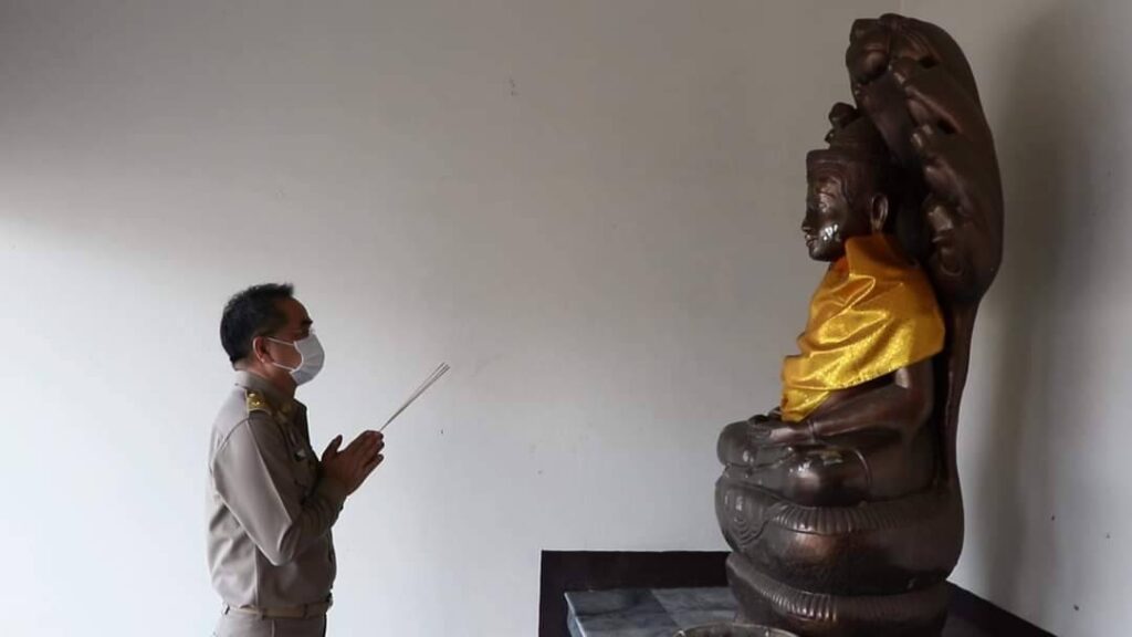 วันที่ 1 ตุลาคม 2565 นายสุพจน์ ยศสิงห์คำ ผู้ว่าราชการจังหวัดสิงห์บุรี เข้าสักการะสิ่งศักดิ์สิทธิ์คู่บ้านคู่เมืองจังหวัดสิงห์บุรี เพื่อความเป็นสิริมงคล เนื่องในโอกาสเดินทางมารับตำแหน่งใหม่ในฐานะพ่อเมืองสิงห์บุรี คนที่ 55 เข้าสักการะพระปางห้ามสมุทร พระประธานนาคปรกและพระเกจิ 11 องค์ จากนั้นได้สักการะศาลหลักเมืองสิงห์บุรี ผูกผ้าแพร 3 สี และถวายพวงมาลัย โดยมี นางสาววีรวรรณ จันทนเสวี หัวหน้าสำนักงานจังหวัดสิงห์บุรี สำนักงานปกครองจังหวัดสิงห์บุรี คุณแม่ภรณี ธนาคมานุสรณ์ พร้อมชาวตลาดจังหวัดสิงห์บุรี ร่วมให้การต้อนรับ อย่างอบอุ่น โดยการรำกลองยาวรอบศาลหลักเมืองสิงห์บุรี บรรยากาศเต็มไปด้วยความคึกคักเป็นกันเอง