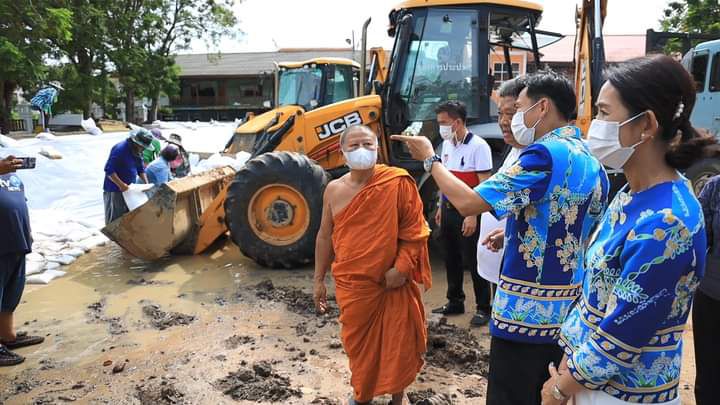 วันที่ 1 ตุลาคม 2565 นายนิวัฒน์ รุ่งสาคร ผู้ว่าราชการจังหวัดพระนครศรีอยุธยาพร้อมด้วย นางวัชราภรณ์ รุ่งสาคร นายกเหล่ากาชาดจังหวัดพระนครศรีอยุธยา หัวหน้าส่วนราชการ ร่วมลงพื้นที่ติดตามการเตรียมรับมือน้ำท่วมเกาะเมืองพระนครศรีอยุธยา ที่บริเวณวัดศาลาปูนวรวิหาร ต.ท่าวาสุกรี อ.พระนครศรีอยุธยาโดยมี นายประทีป การมิตรีและนายไพรัตน์ เพชรยวน รองผู้ว่าราชการจังหวัดพระนครศรีอยุธยา ว่าที่ร้อยตรีสมทรง สรรพโกศลกุล นายกเทศมนตรีนครพระนครศรีอยุธยา พร้อมคณะ ให้การต้อนรับและนำตรวจสถานการณ์น้ำรอบบริเวณวัดศาลาปูนวรวิหาร โดยได้รับความเมตตาจากพระครูอนุกูลศาสนกิจรองเจ้าคณะอำเภอพระนครศรีอยุธยา เจ้าอาวาสวัดศาลาปูนวรวิหาร ร่วมนำตรวจพื้นที่ในครั้งนี้