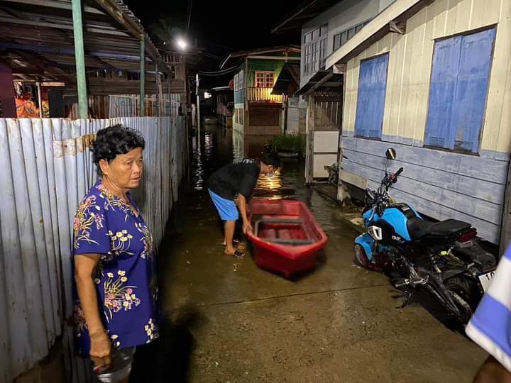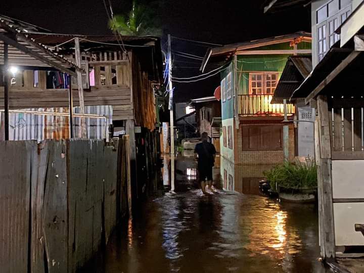 พี่เริ่มมีน้ำล้นเข้าหมู่บ้านไผ่ขวาง ซึ่งตอนนี้มีปริมาณน้ำสูงขึ้นในบางพื้นที่
