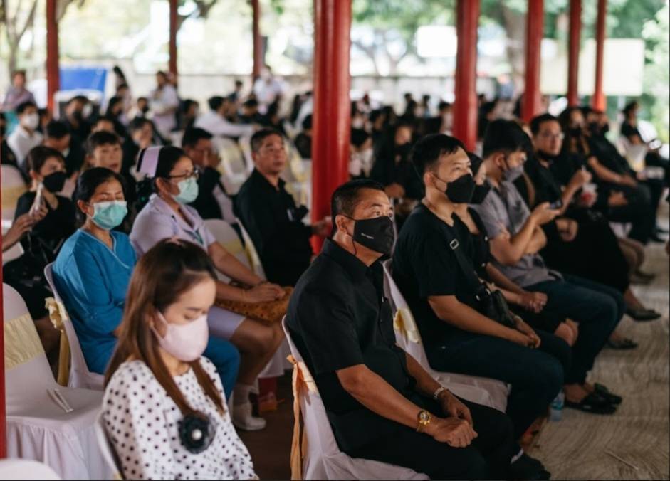โดยมี เจ้าอาวาสวัดเทพกุญชร,เจ้าอาวาสวัดโคกสังข์,พล.ต.ต.ดร.วิชัย สังข์ประไพ,พล.ต.ต.ธนพล สนเทศ,พล.ต.ต.ดร.ชยุต มารยาทตร์ (รองหัวหน้าพรรคเพื่อชาติ),พล.ต.ต.สุทธิ พวงพิกุล,พล.ต.วรรธ อุบลเดชประชารักษ์,ว่าที่ร้อยตรี อภิสัคค์ พรหมสวาสดิ์ (รองอธิบดีอัยการ สำนักงานการบังคับคดี สำนักงานอัยการสูงสุด),สส.ดร.สัณหพจน์ สุขศรีเมือง,สส.ดร.ภณณัฏฐ์ ศรีอินทร์สุทธิ์,สส.ธนพร โสมทองแดง,นายสุรเชษฐ์ ชัยโกศ (พรรคเพื่อไทย),ท่านสุนทร วิลาวัลย์ (อดีต รมช.กระทรวงสาธารณสุข),คณะอาจารย์และศิษย์เก่า รร.อุทัย อ.อุทัย จ.อยุธยา,คุณหมอ ณรงค์ พุ่มโพธิงาม และครอบครัว,นายรชต ศรีชื่น นายกองค์การบริหารส่วนตำบลปลายกลัด อ.บางซ้าย จ.อยุธยา,นายสำราญ ศิริวรรณ์ นายก อบต.พระแก้ว อ.ภาชี จ.อยุธยา,นางสมศรี ทันสมัย นายก อบต.อุทัย อ.อุทัย จ.อยุธยา,นายสกล โรจนีย์ นายก อบต.โคกม่วง อ.ภาชี จ.อยุธยา,นางสาว ปาลพัชร์ หาวิธี นายก อบต.เสนา อ.อุทัย จ.อยุธยา และ นายกริชสุวรรณ ดีสุข ประธานบริหารสำนักข่าวความมั่นคง ได้เดินทางมาร่วมพิธีพร้อมด้วยประชาชนเข้าร่วมไว้อาลัยอย่างเนืองแน่น