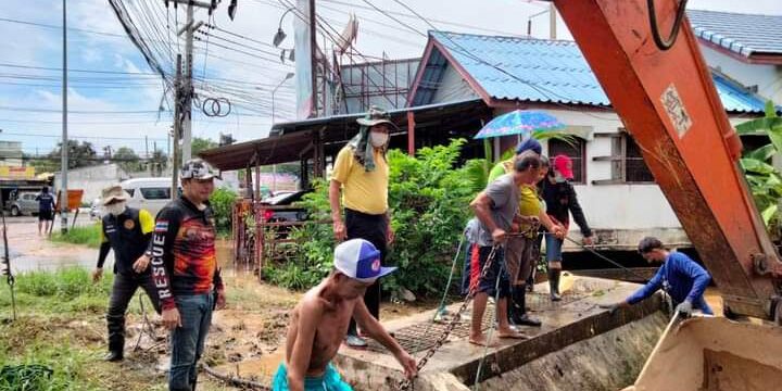วันอาทิตย์ที่ 2 ตุลาคม 2565 ว่าที่ร้อยตรีทรงพล แป้นแก้ว นายอำเภอเมืองลพบุรี พร้อมด้วย ปลัดอำเภอฝ่ายความมั่นคง กำนัน ผู้ใหญ่บ้านฯลฯ ลงพื้นที่ตำบลนิคมฯ ตรวจติดตามระดับน้ำสะพานพลับพลา พบระดับน้ำอยู่ในคลองประมาณ 30 – 40 % น้ำยังไหลแรงคาดว่าหากไม่มีฝนตกเพิ่มน้ำบริเวณสี่แยกนิคมจะแห้งภายในเวลาประมาณ 8 ชม.