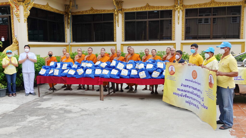 ในโอกาสนี้ โดยดำริของเจ้าประคุณสมเด็จพระมหาธีราจารย์ กรรมการมหาเถรสมาคม ในฐานะประธานคณะกรรมการฝ่ายสาธารณสงเคราะห์ของมหาเถรสมาคม และพระเดชพระคุณพระราชสุทธิธรรมาจารย์ เจ้าคณะจังหวัดปทุมธานี พระครูสุวรรณวรการ ประธานฝ่ายสาธารณสงเคราะห์ของคณะสงฆ์จังหวัดปทุมธานี พร้อมด้วยคณะกรรมการฝ่ายสาธารณสงเคราะห์ของคณะสงฆ์จังหวัดปทุมธานี ได้ประชุมปรึกษาหารือ เรื่องการส่งมอบแรงใจความช่วยเหลือแก่ประชาชนผู้ประสบภัยน้ำท่วมที่ในเขตพื้นที่ต่างๆ ของจังหวัดปทุมธานี และการระดมสิ่งของเครื่องอุปโภคบริโภคบรรเทาภัยจากแต่ละวัด เบื้องต้นรวบรวมได้ 800 ชุด และได้ลงพื้นที่นำร่องเพื่อร่วมกันส่งมอบถุงยังชีพ ชุดแรก จำนวน 100 ชุด ซึ่งภายในบรรจุข้าวสารอาหารแห้ง และของใช้จำเป็น เพื่อส่งแรงใจช่วยเหลือประชาชนผู้ประสบภัยน้ำท่วมในเขตพื้นที่อำเภอลำลูกกา จังหวัดปทุมธานี