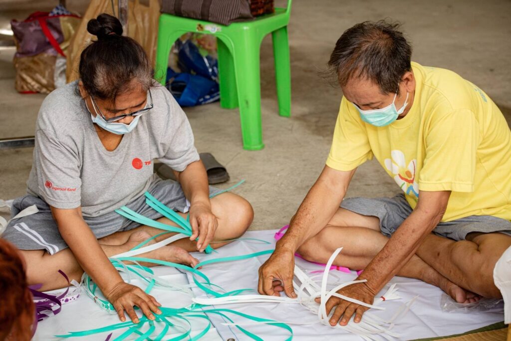 รศ.ดร.สุกัญญา กล่าวต่อว่า ผลงานหัตถกรรมสร้างสรรค์จากวัสดุเหลือใช้ ซึ่งเกิดขึ้นจากศักยภาพความสามารถของชุมชนต่าง ๆ ที่ผ่านการเข้าร่วมโครงการดังกล่าวกับ มกธ. ได้แก่ ตะกร้า กระเป๋า กระบุงที่มีทั้งขนาดเล็กจนถึงขนาดใหญ่ ผลผลิตดังกล่าวล้วนพัฒนามาจากเศษวัสดุเหลือใช้ในชุมชนต่าง ๆ ทั้งสิ้น เช่น เศษภาชนะบรรจุภัณฑ์เครื่องดื่ม เส้นใยพลาสติก เศษผ้า กล่องกระดาษ เป็นต้น