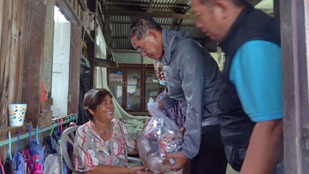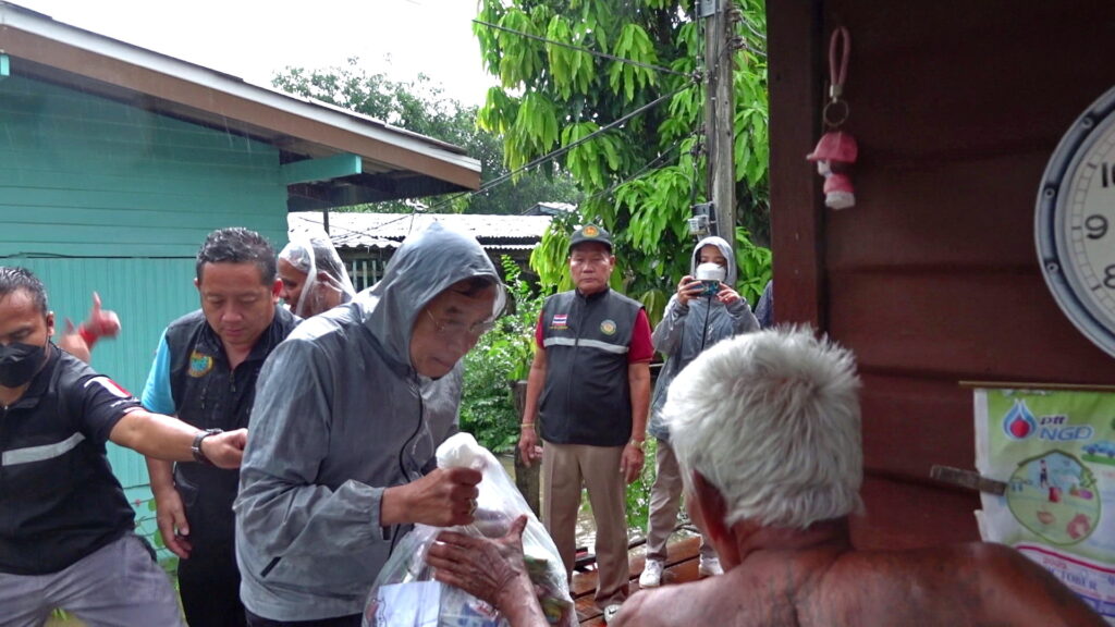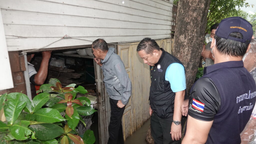 เมื่อเวลา 15.00 น. วันที่ 3 ตุลาคม 2565 ที่ชุมชนวัดสุราษฎร์รังสรรค์ ตำบลคลองควาย อำเภอสามโคก จังหวัดปทุมธานี พล.ต.ท.คำรณวิทย์ ธูปกระจ่าง นายก อบจ.ปทุมธานี และนางรุจศลักษณ์ ธูปกระจ่าง ตั้งวงษ์เลิศ เลขานุการนายก อบจ.ปทุมธานี พร้อมทีมงาน อบจ.ปทุมธานี ลุยฝนลงพื้นที่เยี่ยมให้กำลังใจและมอบถุงยังชีพให้ประชาชนที่ประสบภัยน้ำท่วมบ้านที่พักอาศัย ขณะที่เยี่ยมประชาชนพบว่ามีเหตุพบศพจมน้ำนานกว่า 3 วัน จึงประสานเจ้าหน้าที่ให้ตรวจสอบและนำศพออกจากที่เกิดเหตุให้เร็วที่สุดเพราะส่งกลิ่นเหม็นแล้ว