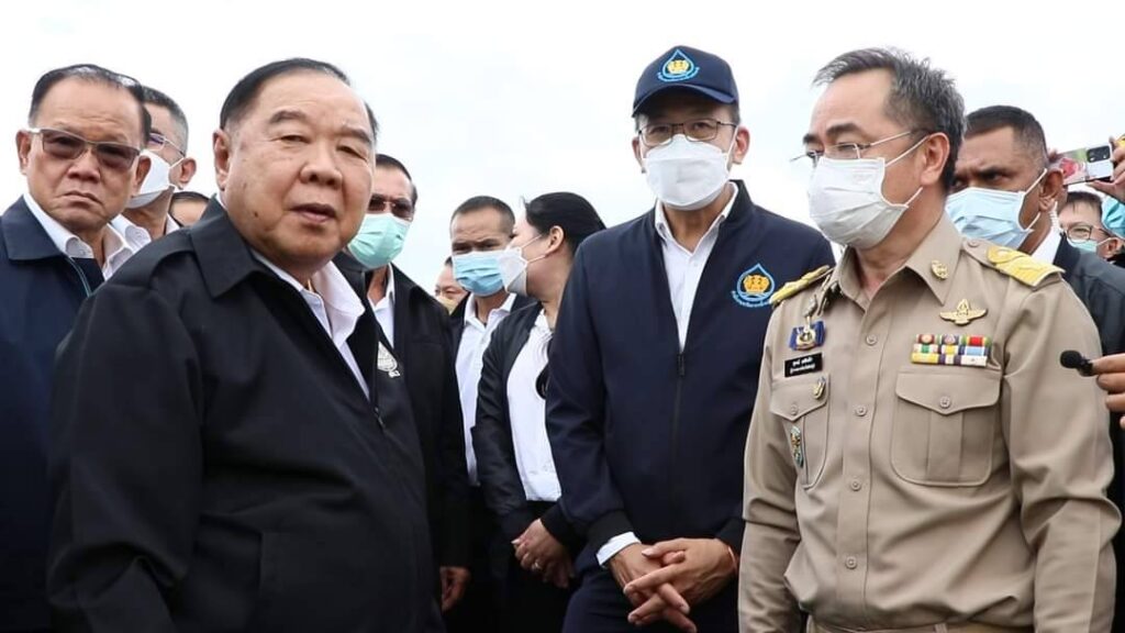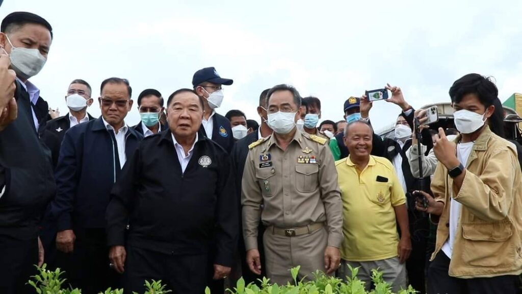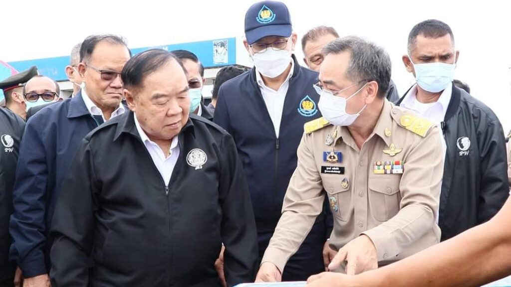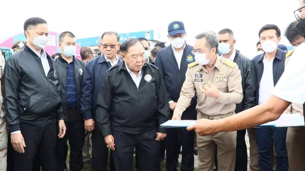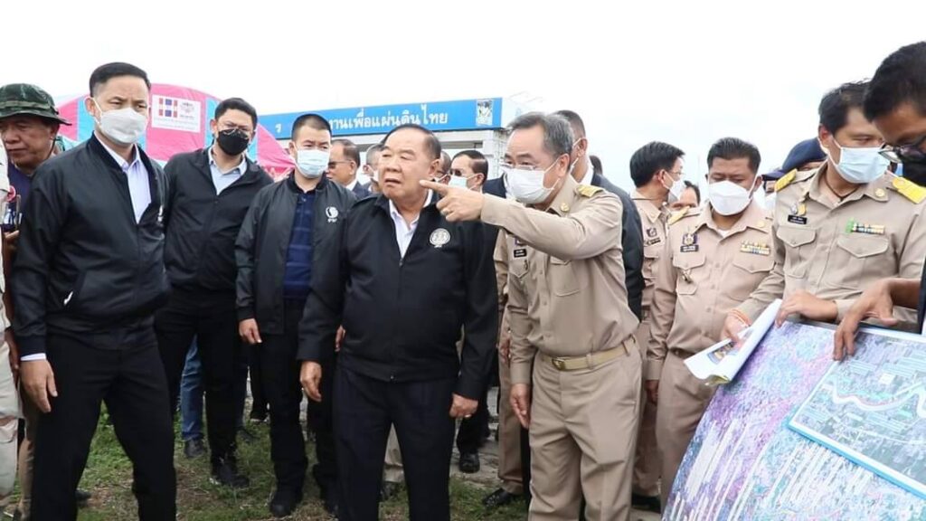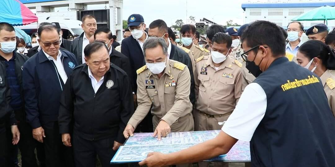 วันที่ 3 กันยายน 2565 เวลา 14.30 น. พลเอกประวิตร วงษ์สุวรรณรองนายกรัฐมนตรี ในฐานะประธานคณะกรรมการทรัพยากรน้ำแห่งชาติ พร้อมนายชัยวุฒิ ธนาคมานุสรณ์ รัฐมนตรีว่าการ กระทรวงดิจิทัลเพื่อเศรษฐกิจและสังคม และคณะลงพื้นที่ตรวจติดตามสถานการณ์อุทกภัย ณ ประตูระบายน้ำบางโฉมศรี จังหวัดสิงห์บุรี โดยมี นายสุพจน์ ยศสิงห์คำ ผู้ว่าราชการจังหวัดสิงห์บุรี รองผู้ว่าราชการจังหวัดสิงห์บุรี นายอำเภออินทร์บุรี หัวหน้าส่วนราชการ และหน่วยงานราชการให้ต้อนรับ ผู้ว่าราราชการจังหวัดสิงห์บุรี รายงานสถานการณ์น้ำเจ้าพระยาและโครงการก่อสร้างเขื่อนป้องกันตลิ่งริมแม่น้ำเจ้าพระยา