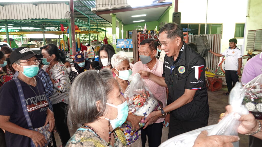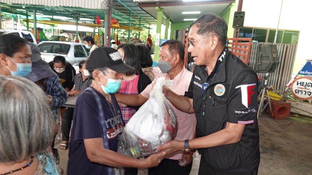พล.ต.ท.คำรณวิทย์ ธูปกระจ่าง นายก อบจ.ปทุมธานี กล่าวว่า ได้นำถุงยังชีพมามอบให้ประชาชนที่ได้รับผลกระทบจากน้ำท่วมเพื่อให้ช่วยบรรเทาความเดือดร้อน เป็นของมูลนิธิมงคล-จงกล ธูปกระจ่าง เนื่องจากเราต้องรีบบรรเทาทุกข์ให้ประชาชนไปก่อน ส่วนบริเวณวัดถั่วทองเป็นจุดที่ตำ่แต่มีความสำคัญ เนื่องจากถ้าหากน้ำเอ่อล้นข้ามถนนไปได้ ก็จะเข้าท่วมพื้นที่เศรษฐกิจสถานที่สำคัญทางราชการถนนสายหลักที่ ใช้เดินทางระหว่างจังหวัดจึงมีพี่น้องประชาชนหลายภาคส่วนเข้ามาช่วยกันกรอกกระสอบทราบเพื่อป้องกันน้ำตั้งแต่เมื่อคืนที่ผ่านมา แต่มาวันนี้ระดับน้ำได้เอ่อล้นมาด้านข้าง ทำให้วัดถั่วทองถูกน้ำท่วม วันนี้จึงได้ระดมหลาย ๆ ฝ่าย ทั้งท้องถิ่นจังหวัด ทหารกองทัพบก จิตอาสา รวมถึงพี่น้องประชาชน ทีมงานของบ้านปทุม และสจ.ทุกท่านที่มา เพื่อกู้วัดถั่วทองให้ได้ เราจะปล่อยให้น้ำข้ามถนนตรงนี้ไม่ได้ หากน้ำข้ามไปได้จะส่งผมให้พื้นที่เศรษฐกิจด้านในเสียหายหมด ฝากกรมชลประทานขอให้แจ้งเตือนเป็นระยะ เพื่อให้พี่น้องประชาชนให้ตั้งหลักได้ เราไม่อยากให้เกิดเหตุการณ์ ความเสียหายทั้งชีวิตและทรัพย์สินที่ เกิดขึ้นมาแล้วพอมีมวลมนำ้จำนวนมหาศาลเข้ามาทำให้ระดับน้ำขึ้นมาอย่างรวดเร็วโดยไม่มีการเตือนประชาชนก็เก็บสิ่งของกันไม่ทัน เจ้าของทรัพย์สินเสียหายไม่จมน้ำก็ลอยไปกับกระแสน้ำรวมถึงมีพี่น้องประชาชนต้องเสียชีวิต ขณะนี้ทางท้องถิ่นอบต.เทศบาลทุกแห่ง สจ.ทุกท้องที่ และท่านท้องถิ่นจังหวัดปทุมธานี เราได้พยายามแจ้งเตือนทั้งหมดแล้ว ไม่ให้พี่น้องประชาชนไม่ประมาท โดยเฉพาะเหตุที่เกิดเมื่อวานนี้ที่ไฟฟ้ารั่ว ซึ่งเราเตือนมานานกว่า 2 เดือนแล้ว เราได้เตรียมการแม้แต่เครื่องเทสไฟฟ้ารั่ว เราได้นำมาแจกให้หมดแล้ว ดังนั้นเหตุการณ์ไฟฟ้ารั่วไม่น่าเกิดขึ้น ก็ขอว่าอย่าพึ่งประมาท ส่วนการวางแนวป้องกันตามที่ได้ประชุมกัน วันนี้ท่านประธานสภาฯและสจ.ทุกคนได้ลงพื้นที่มาดูสถานการณ์น้ำท่วม รวมถึงการวางแผนว่าจะป้องกันแนวไหน ดูแนวถนนที่ต่ำ เพื่อไม่ให้น้ำเอ่อล้นเข้าท่วมพื้นที่เศรษฐกิจ ส่วนการเบิกจ่ายนั้น เราต้องทำให้ถูกระเบียบแต่เราก็พยายามหารือเร่งดำเนินการอยู่แล้ว ไม่ใช่ว่าค่อยให้ประกาศอุทกภัยแล้วมาเบิกจ่าย มันไม่ทันต่อเหตุการณ์ และก็ป้องกันไม่ทัน จะมาเบิกจ่ายเพื่อบรรเทาแต่เมื่อเดือดร้อนแล้วจะเสียหายเยอะ ฝากหน่วยงานที่เกี่ยวข้องเรื่องการเบิกจ่าย กฎหมายต่าง ๆ ช่วยพิจารณาให้คำปรึกษากับท้องถิ่นอย่างเร่งด่วน เนื่องจากขณะนี้พี่น้องประชาชนเ