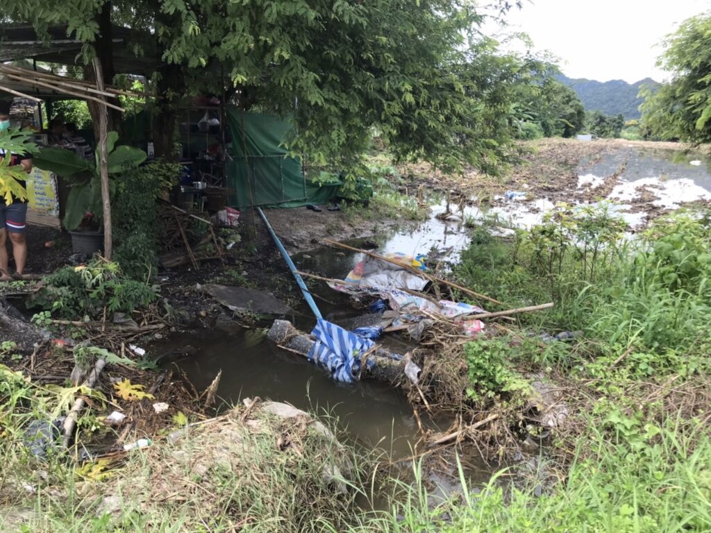 ผลจากการตรวจสอบ พื้นที่ พบว่า มีบ้านเรือน ถูกนำ้ท่วมประมาณ 40-50 หลังคาเรือนที่เกิดจาก ฝนตกหนัก แล้วนำ้ได้ไหล มาร่วมกัน ที่ริมถนน และได้ไหลจากที่สูง จากฝังตรงกันข้าม ทางด้านทิศใต้ ไหลผ่านท่อระบายนำ้ กลางถนนสายดังกล่าว นำ้ได้ไหลเอ่อล้น ท่วมบ้านพักอาศัย ที่อยู่ริมถนน ตรงสามแยกทางเข้า วัดเขาจีนแล เพราะ เกิดจากทางแขวงการทาง ได้รับงบประมาณ มาปรับปรุงถนนเส้นนี้ใหม่ ในปีที่ผ่านมา และได้ขุดฝังท่อระบายนำ้ กลางถนนไว้ แต่ไม่ได้ จัดทำ ลำราง หรือทางระบายนำ้เชื่อมไว้ จึงได้เกิดปัญหา นี้