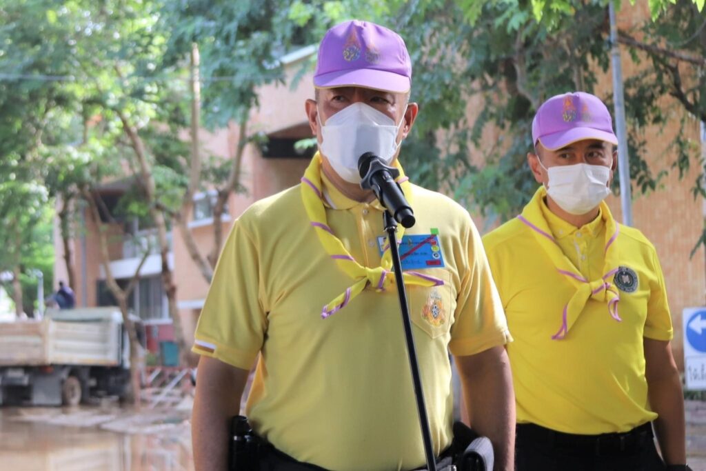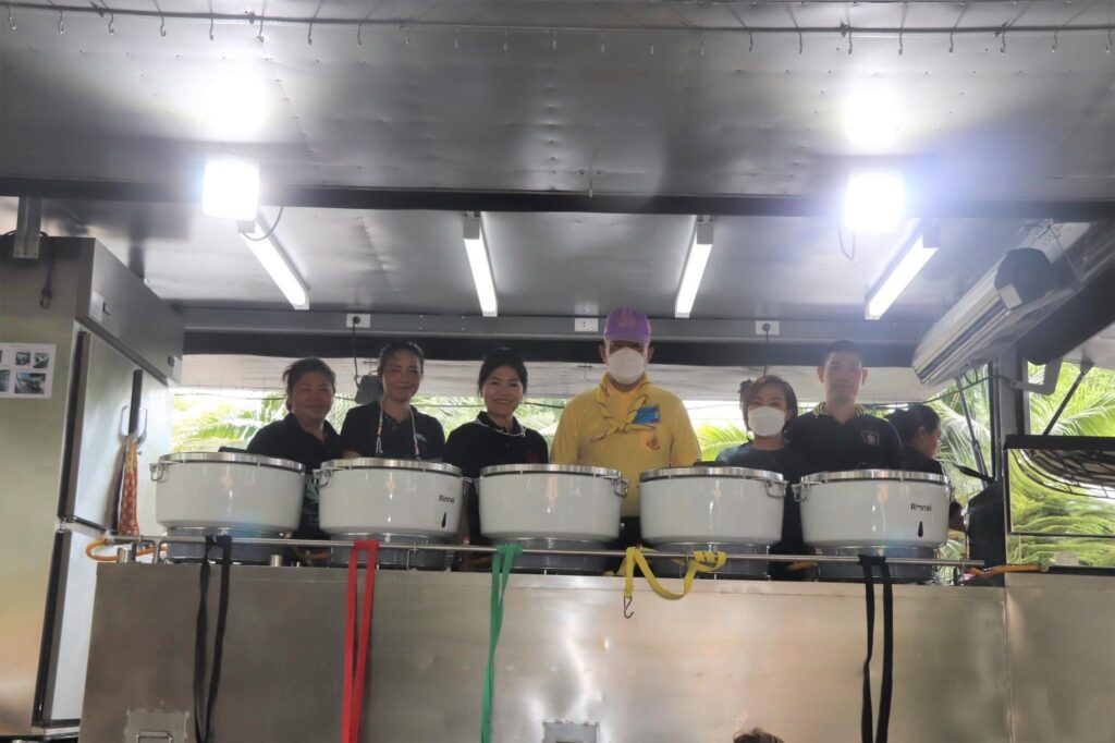 ทั้งนี้ พล.ต.ท.ปิยะ ต๊ะวิชัย ผบช.ภ.5 คุณพิยดา ต๊ะวิชัย ประธานชมรมแม่บ้านตำรวจภูธรภาค 5 พร้อมคณะแม่บ้านในสังกัดตำรวจภูธรภาค 5 ได้จัดโรงครัวสนามประกอบเลี้ยงเพื่อแจกจ่ายอาหารให้กับผู้ใต้บังคับบัญชาและผู้ประสบภัยอย่างต่อเนื่องมาเป็นวันที่ 4