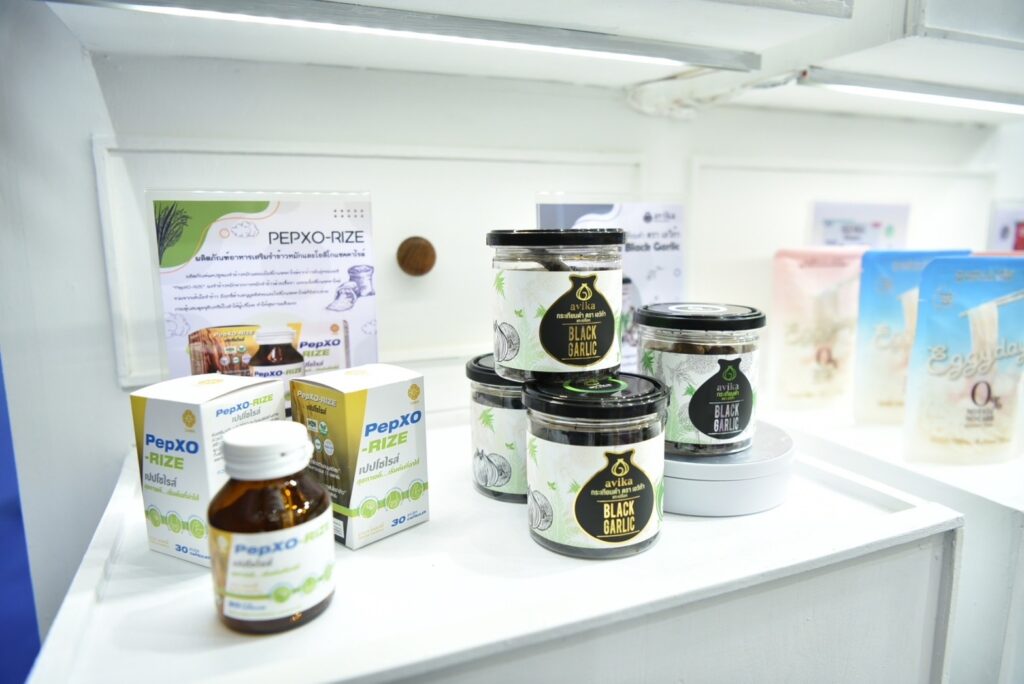 (วช.) นำผลิตภัณฑ์จากผลงานวิจัยทั้งในส่วนของวัตถุดิบแปรรูปขั้นต้น ผลิตภัณฑ์อาหารและเครื่องดื่มร่วมจัดแสดงที่บูธ Innovative House by NRCT หมายเลข E02 ฮอลล์ 3 มากกว่า 20 ผลิตภัณฑ์ ได้แก่ ผลิตภัณฑ์มะม่วงผงทำแห้งแบบแช่เยือกแข็ง,สมูทตี้ผงจากอิตาเลียนชนิดโพรไอติก โปรตีนจากไข่ขาว,ผลิตภัณฑ์ปลาร้าผงโซเดียมต่ำ,ผลิตภัณฑ์เครื่องดื่มผักชนิดผง,ผลิตภัณฑ์เจลลี่พร้อมดื่มผักโขมอินทรีย์,ผลิตภัณฑ์ผงผักเคลอบไอน้ำ,ผลิตภัณฑ์เส้นไข่ขาวไร้แป้งพร้อมทาน,ผลิตภัณฑ์น้ำว่านหางจระเข้,ผลิตภัณฑ์ผักโขมอินทรีย์อบกรอบ,ผลิตภัณฑ์น้ำขิงสปาร์คกลิ้ง,ผลิตภัณฑ์แปรรูปส้มสีทอง (เช่น วุ้นสวรรค์ส้มสีทอง-ชาแยมส้มสีทอง-เครื่องดื่มน้ำส้มสีทองผสมเกล็ดส้ม-กาแฟลาเต้ส้ม-ส้มลอยแก้วสเตอร์ริไลซ์-พุดดิ้งส้มสีทอง และชีสส้มสีทอง),ผลิตภัณฑ์ชาใบข้าวเหนียวก่ำออร์แกนิค,ผลิตภัณฑ์อาหารเสริมรำข้าวหมัก และโอลิโกแซคคาไรด์,ผลิตภัณฑ์กระเทียมดำ,เครื่องดื่มน้ำขิงเข้มข้น,ผลิตภัณฑ์นวัตกรรมแปรรูปเพิ่มมูลค่าจากมังคุด (เช่น เอ็นเนอร์จี้เจล-โพรไบโอติคชนิดผง-เค้กมังคุด-น้ำมังคุดพร้อมดื่ม),ผลิตภัณฑ์เครื่องดื่มน้ำผึ้งผสมมะนาวชนิดเข้มข้น และแผ่นไอซิ่งชีทสำหรับพิมพ์ภาพตกแต่งหน้าเค้ก