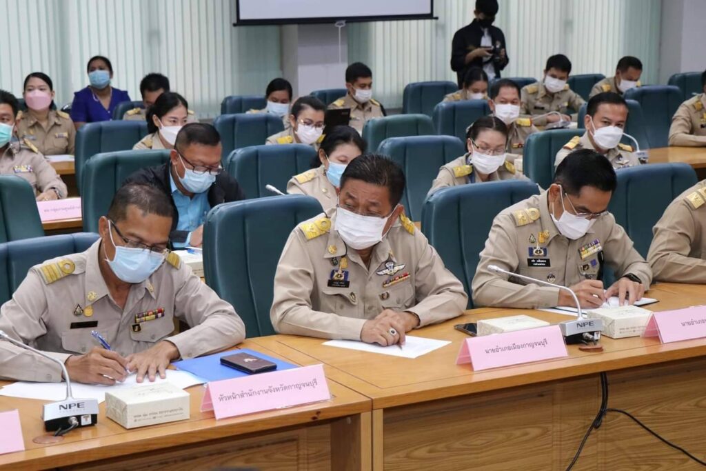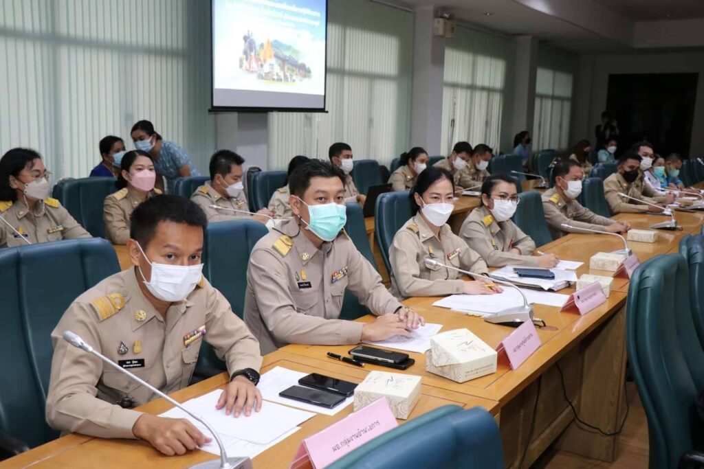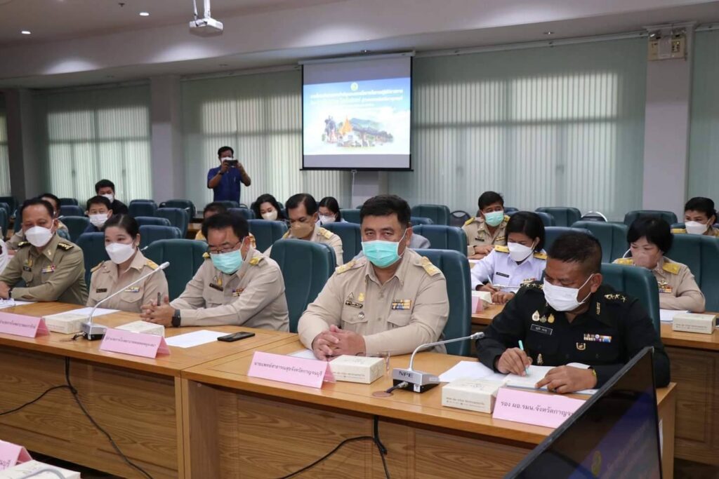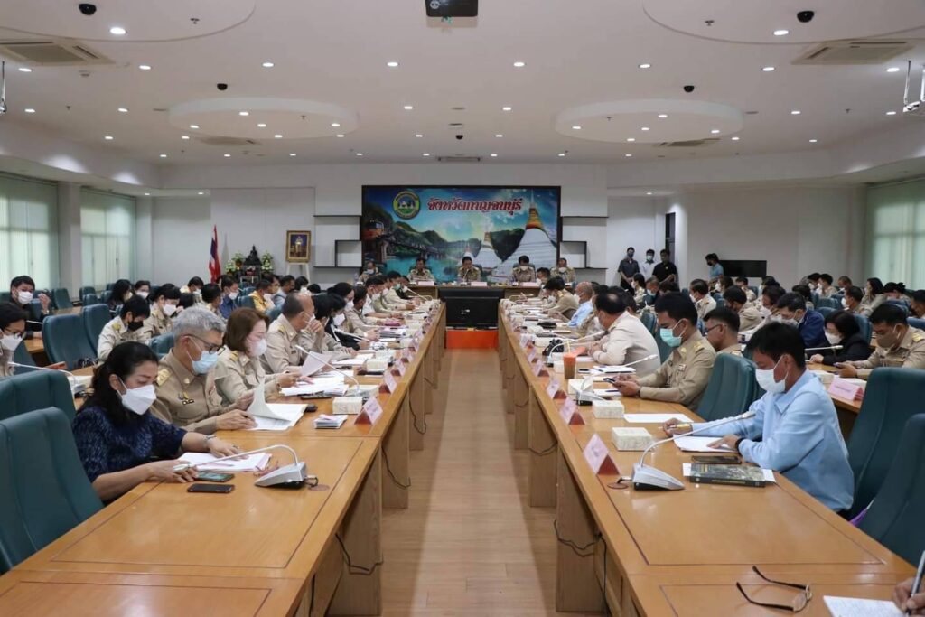 จากนั้นได้เริ่มประชุมมอบนโยบาย โดย ร้อยโท ทศพล ไชยโกมินทร์ ผู้ว่าราชการจังหวัดกาญจนบุรี ได้มอบ นโยบายและแนวทางการดำเนินงานให้กับส่วนราชการจังหวัดกาญจนบุรี ให้มุ่งเน้นการบูรณาการจากทุกภาคส่วนปฏิบัติงานร่วมกัน เนื่องจากพื้นที่จังหวัดกาญจนบุรี มีขนาดใหญ่ มีประชากรจำนวนมาก ดังนั้นการดำเนินการของภาครัฐจะต้องทั่วถึงทุกพื้นที่ และเป็นไปตามวิสัยทัศน์ของจังหวัดกาญจนบุรี คือ “ ประชาชนมีคุณภาพ สภาพแวดล้อมดี สินค้าเกษตรมีมาตรฐาน การท่องเที่ยวอัตลักษณ์เมืองกาญจน์ ย่านอุตสาหกรรมสีเขียว และประตูสู่ทวาย ” โดยคำนึงถึงคุณภาพชีวิตของประชาชนเป็นหลัก ทั้ง การส่งเสริมการเกษตรให้มีมาตรฐาน การท่องเที่ยวมีอัตลักษณ์ของเมืองกาญจน์ ตามสิ่งที่ชาวจังหวัดกาญจนบุรีเสนอและต้องการ การดูแลด้านอุสาหกรรมให้เป็นอุตสาหกรรมสีเขียว ทั้งหมดนี้ก็จะนำไปสู่การค้าชายแดนด่านบ้านพุน้ำร้อน-ทวาย ที่จะนำพาไปสู่เศรษฐกิจ สังคม ขับเคลื่อนทั้งจังหวัดกาญจนบุรี จังหวัดใกล้เคียงและในภูมิภาค เพื่อประโยชน์สูงสุดของประชาชน โดยเฉพาะคนเมืองกาญจน์ ให้มีสภาพแวดล้อมที่น่าอยู่ มีอาชีพ มีรายได้ มีคุณภาพชีวิตที่ดีขึ้น