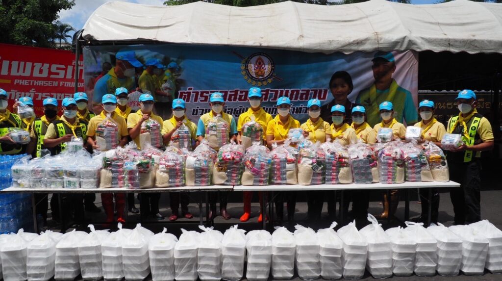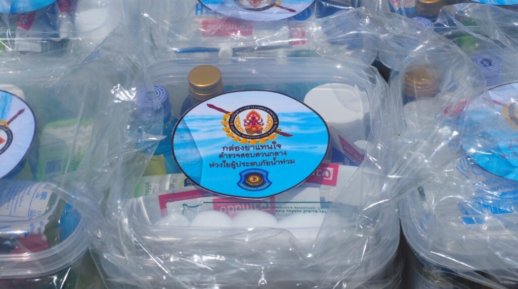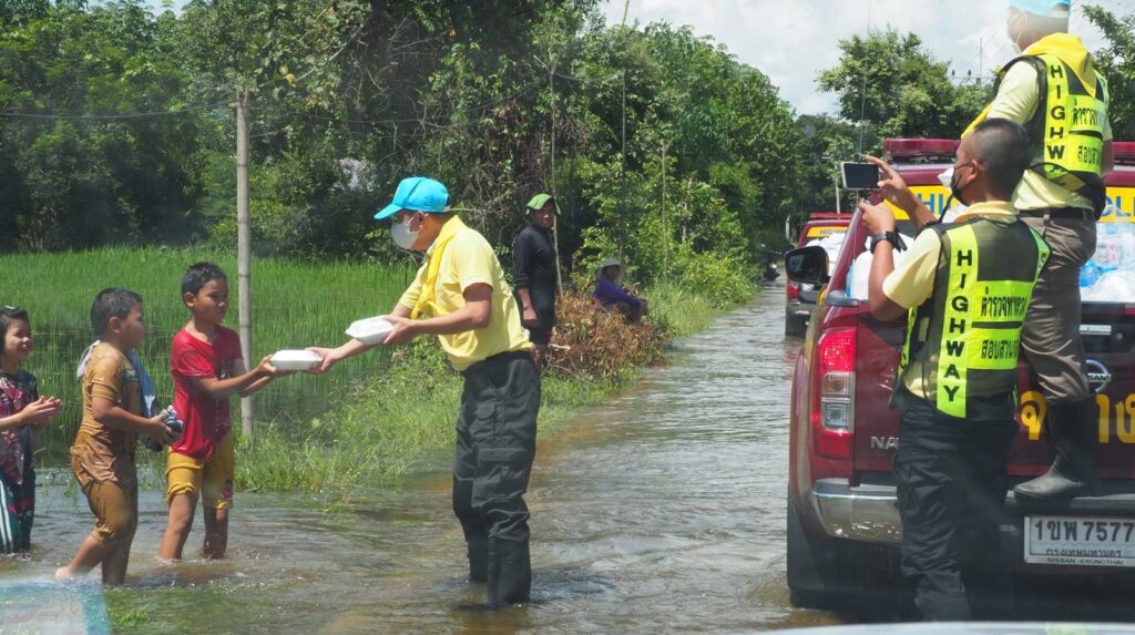 พ.ต.อ.พิชญ์รุจ ผกก.6 บก.ทล.จึงนำจิตอาสาตำรวจทางหลวงเข้าช่วยเหลือ นำยารักษาโรค ถุงยังชีพ ข้าวกล่อง น้ำดื่มมาช่วยเหลือ 150 หลังคาเรือน เพื่อช่วยบรรเทาความเดือดร้อนของชาวบ้าน