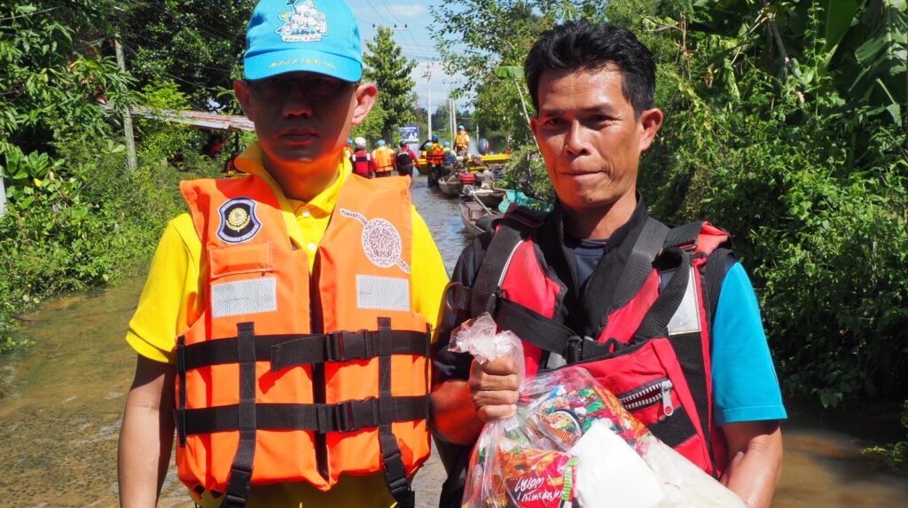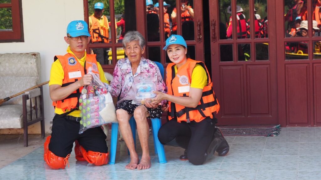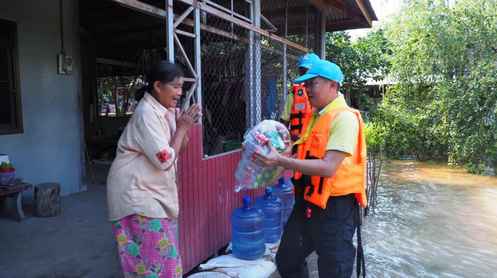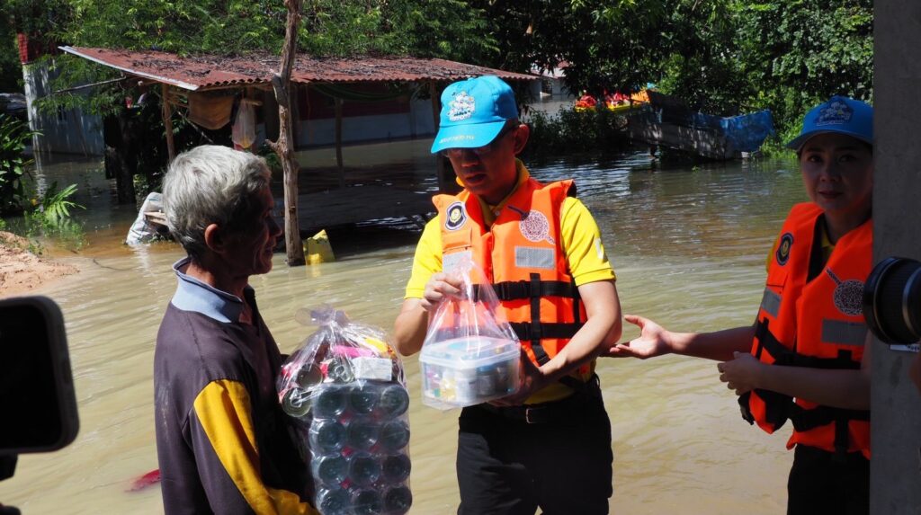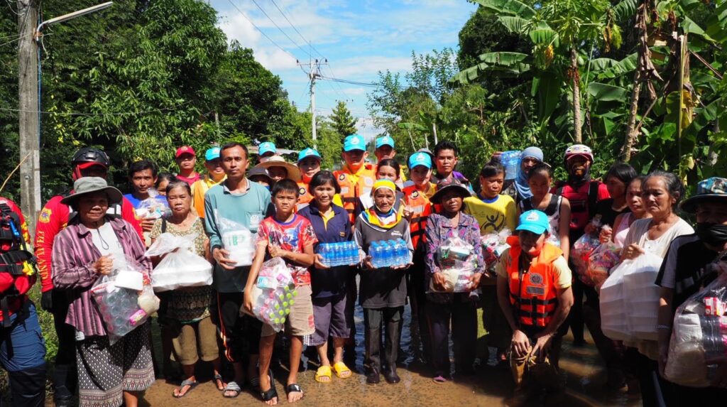 หลังชาวบ้านร้องขอความช่วยเหลือยารักษาโรค ข้าวกล่อง น้ำดื่ม เนื่องจากหมู่บ้านมีลักษณะเป็นเกาะ ไม่สามารถเข้าออกได้ น้ำท่วมถนนลึก 2-3 เมตร ทำให้ขาดแคลนน้ำ อาหาร อีกทั้งเริ่มมีโรคเกี่ยวกับเท้า เพราะน้ำท่วมขังหลายวัน