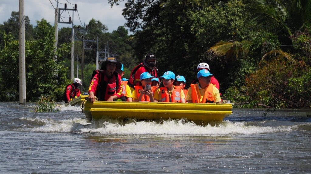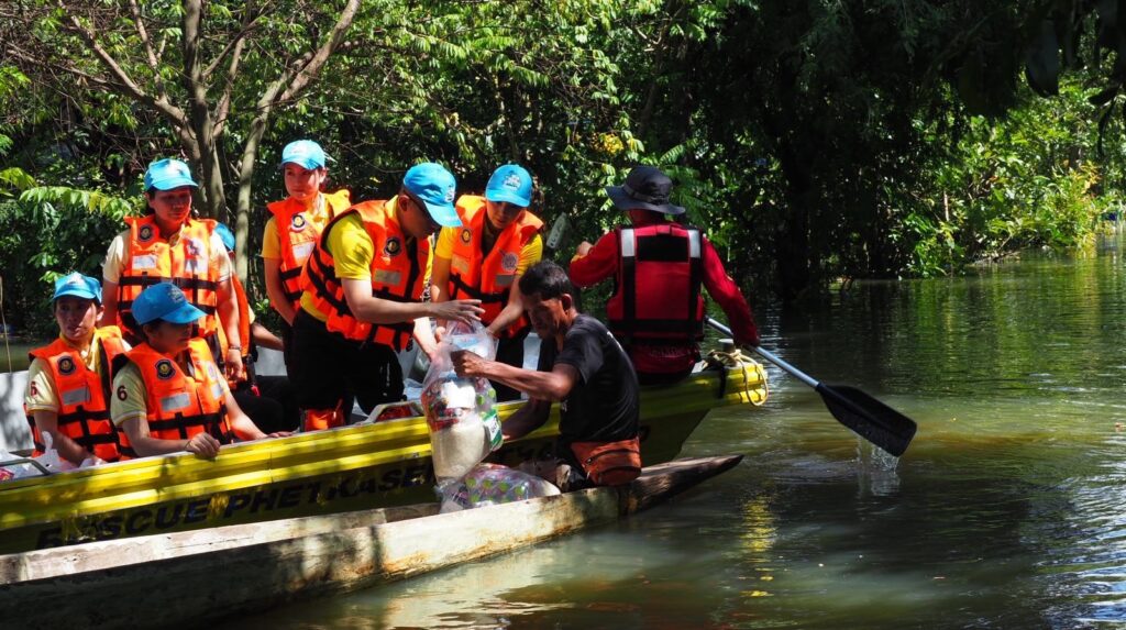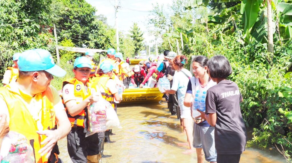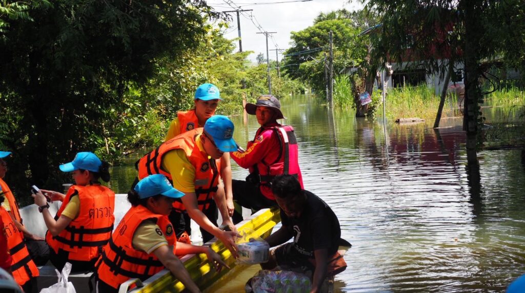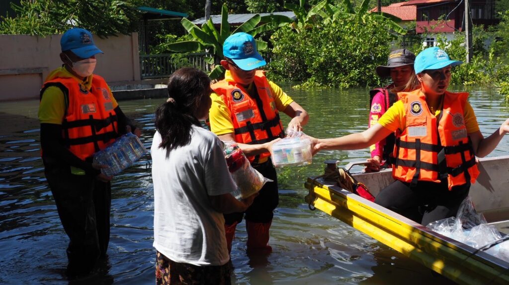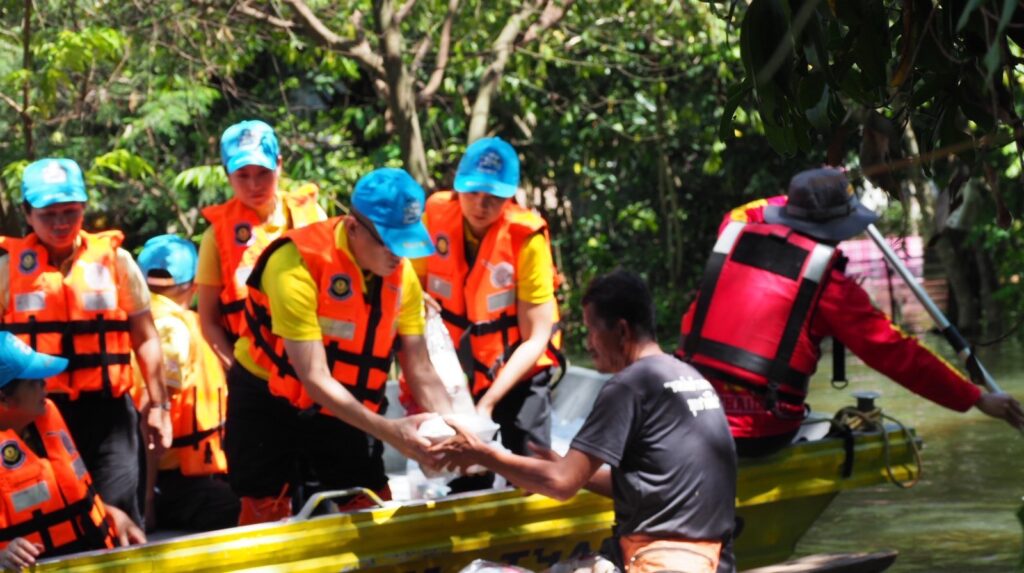 หลังชาวบ้านร้องขอความช่วยเหลือยารักษาโรค ข้าวกล่อง น้ำดื่ม เนื่องจากหมู่บ้านมีลักษณะเป็นเกาะ ไม่สามารถเข้าออกได้ น้ำท่วมถนนลึก 2-3 เมตร ทำให้ขาดแคลนน้ำ อาหาร อีกทั้งเริ่มมีโรคเกี่ยวกับเท้า เพราะน้ำท่วมขังหลายวัน
