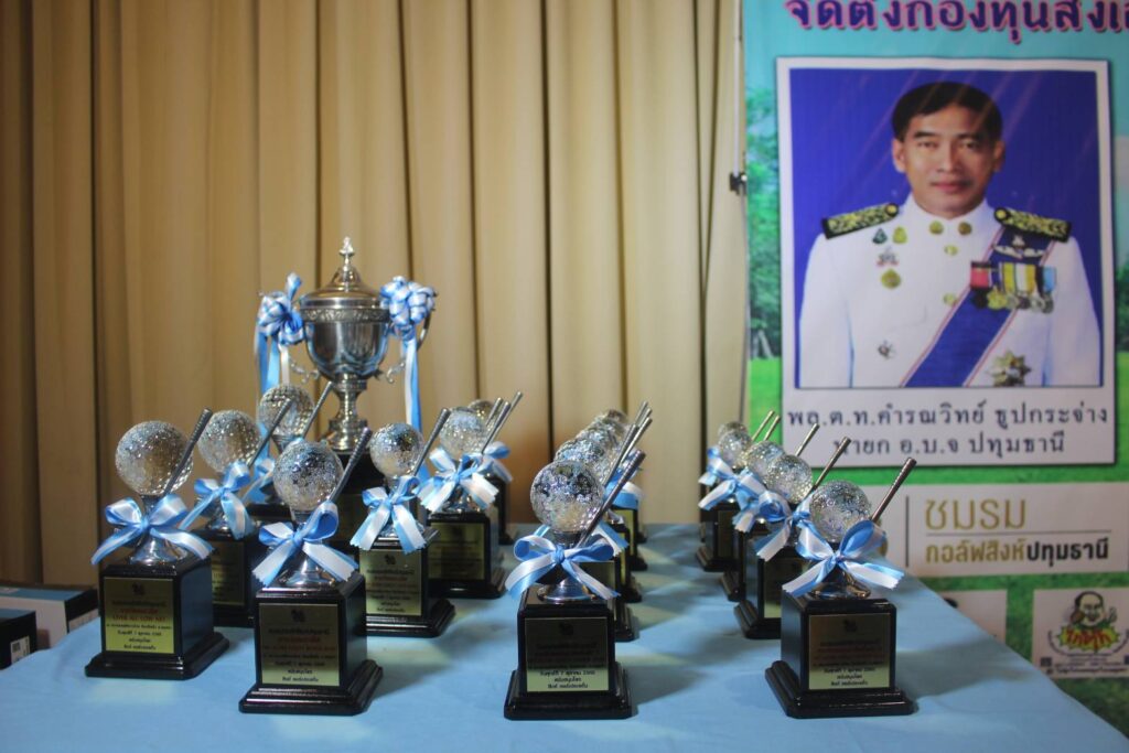 บรรยากาศมอบรางวัลการแข่งขันกอล์ฟการกุศลจัดตั้งกองทุนส่งเสริมเศรษฐกิจพอเพียงสู่ชุมชน ได้มีพิธียืนสงบนิ่งไว้อาลัยผู้เสียชีวิต จากเหตุรุนแรงที่ศูนย์พัฒนาเด็กเล็ก องค์การบริหารส่วนตำบลอุทัยสวรรค์ จ.หนองบัวลำภู และได้มอบรางวัลให้กับผู้ที่ชนะการแข่งขันกอล์ฟ และได้มีการประมูลเสื้อยืดลายเซ็น พล.ต.ท.คำรณวิทย์ ธูปกระจ่าง นายก อบจ.ปทุมธานีเพื่อสมทบการกุศลจัดตั้งกองทุนส่งเสริมเศรษฐกิจพอเพียงสู่ชุมชน