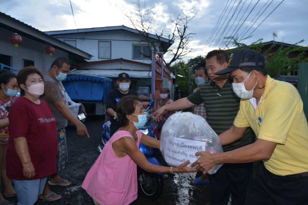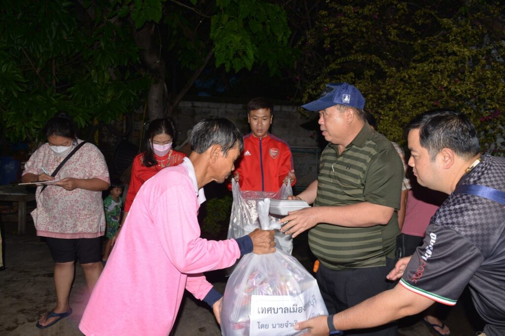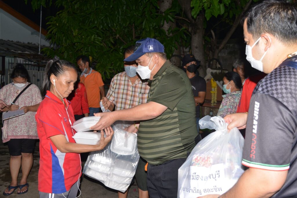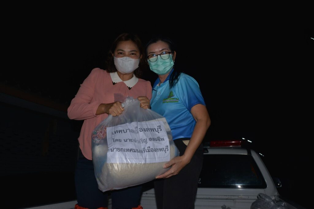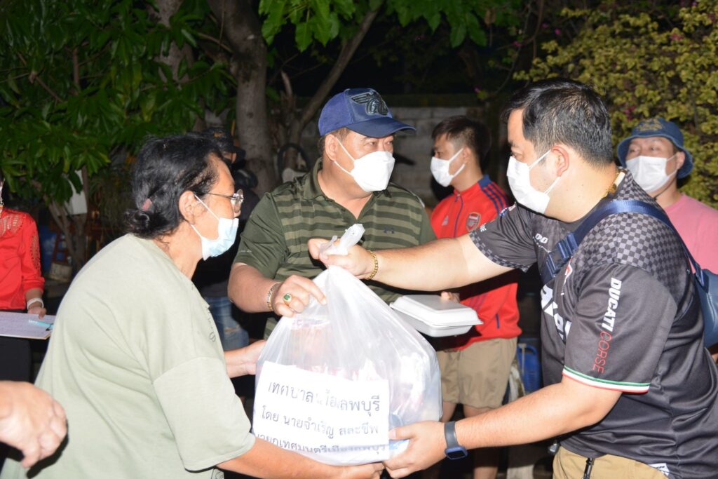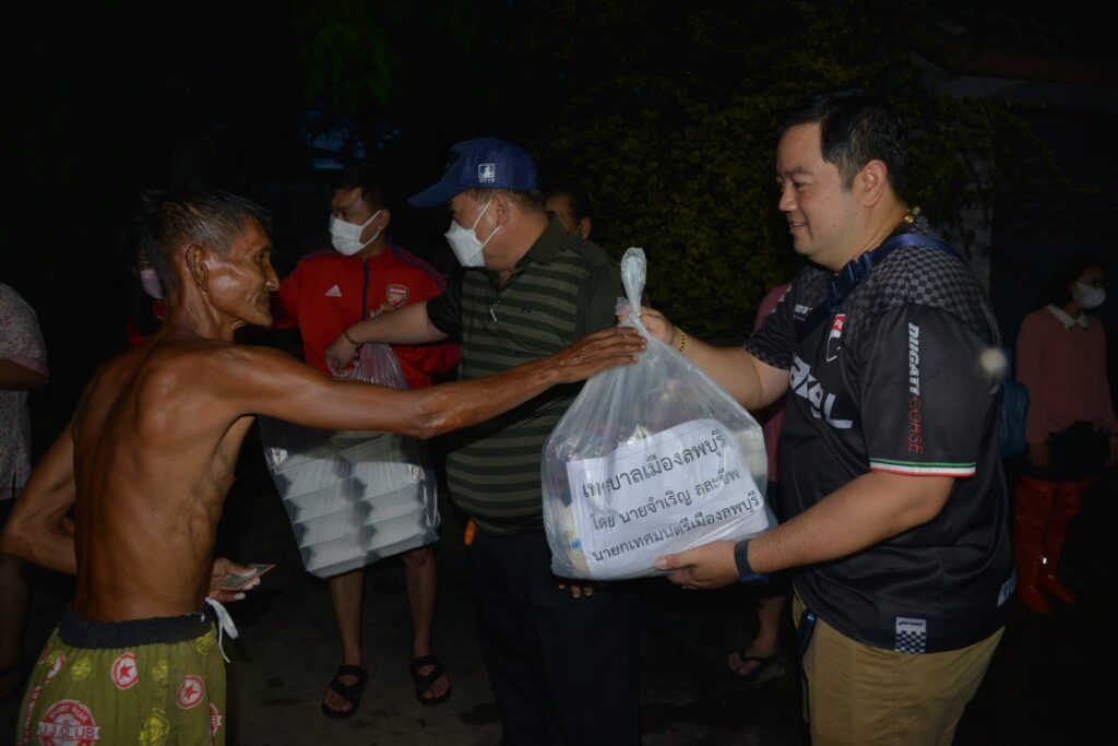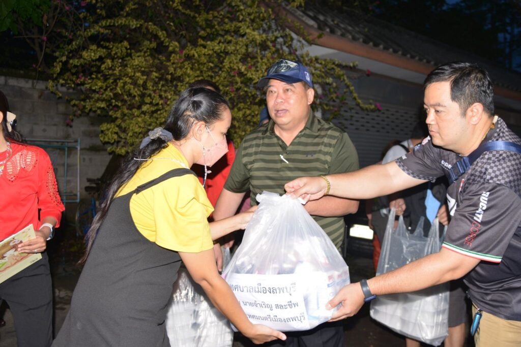 นายจำเริญ สละชีพ นายกเทศมนตรีเมืองลพบุรี นายสันธนะ บัวชาติ รองนายกเทศมนตรีเมืองลพบุรี นายสุรโชติ โชคชัย ประธานสภาเทศบาลเมืองลพบุรี คณะสมาชิกสภาเทศบาลเมืองลพบุรี หัวหน้าส่วนราชการเทศบาลเมืองลพบุรี ลงพื้นที่มอบถุงยังชีพ ข้าวกล่อง เพื่อช่วยเหลือบรรเทาความเดือดร้อนประชาชนในเขตเทศบาลเมืองลพบุรี ที่ถูกน้ำท่วม บ้านเรือนประชาชนจำนวนหลายหลังคาเรือน