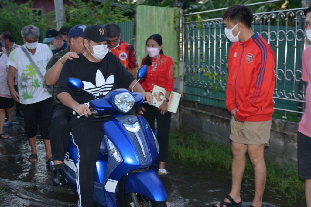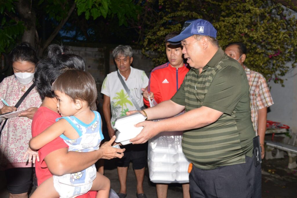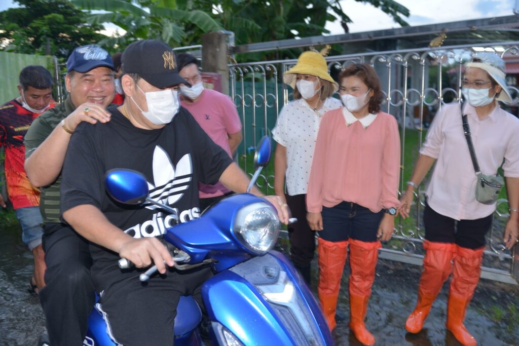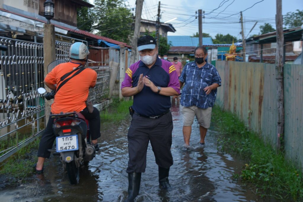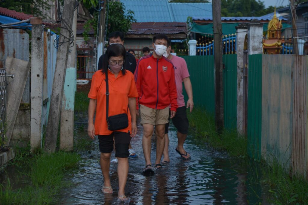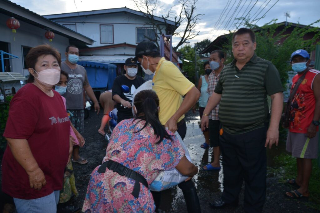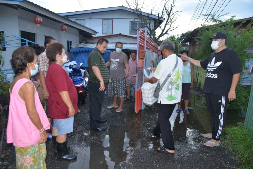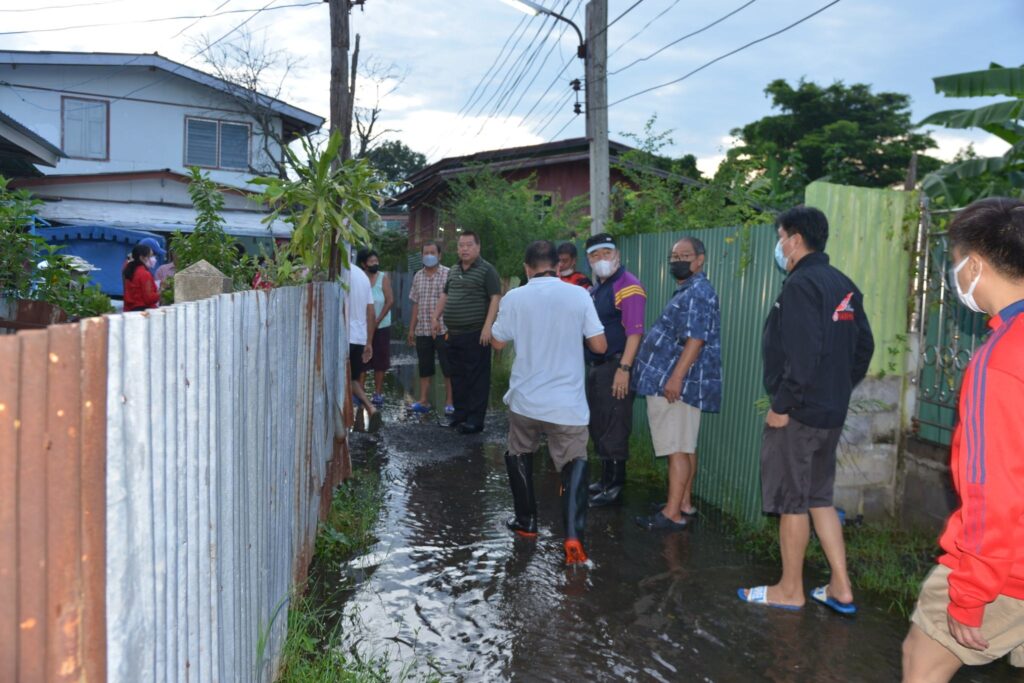 นายจำเริญ สละชีพ นายกเทศมนตรีเมืองลพบุรี นายสันธนะ บัวชาติ รองนายกเทศมนตรีเมืองลพบุรี นายสุรโชติ โชคชัย ประธานสภาเทศบาลเมืองลพบุรี คณะสมาชิกสภาเทศบาลเมืองลพบุรี หัวหน้าส่วนราชการเทศบาลเมืองลพบุรี ลงพื้นที่มอบถุงยังชีพ ข้าวกล่อง เพื่อช่วยเหลือบรรเทาความเดือดร้อนประชาชนในเขตเทศบาลเมืองลพบุรี ที่ถูกน้ำท่วม บ้านเรือนประชาชนจำนวนหลายหลังคาเรือน