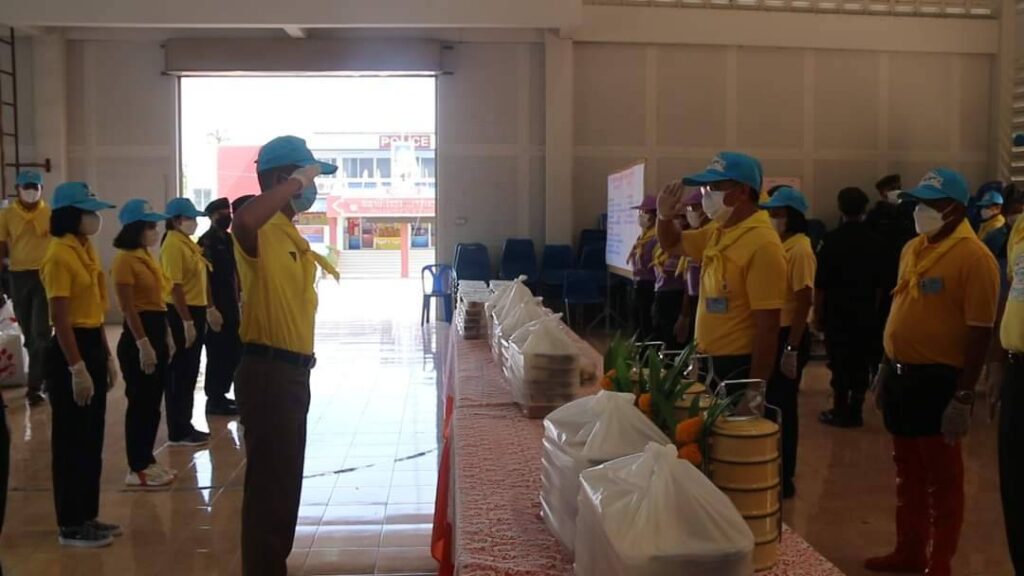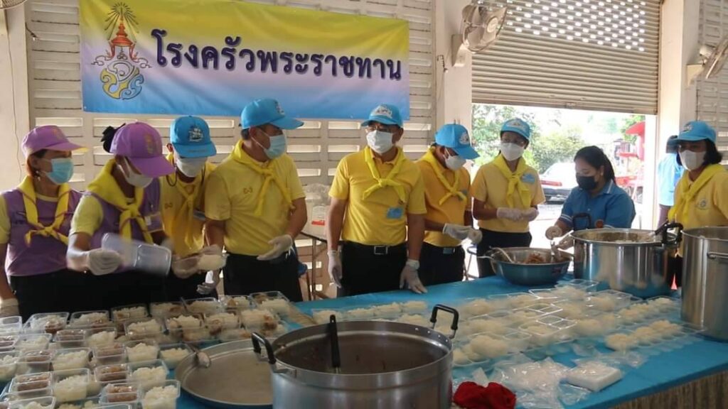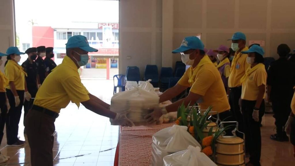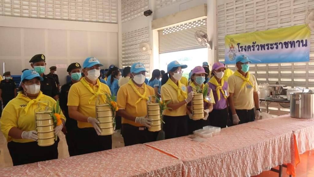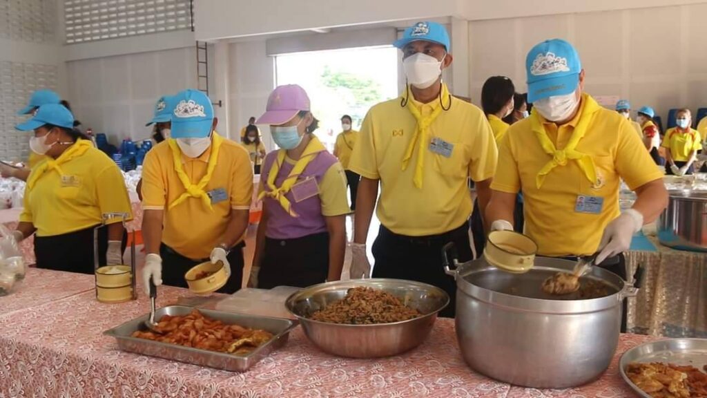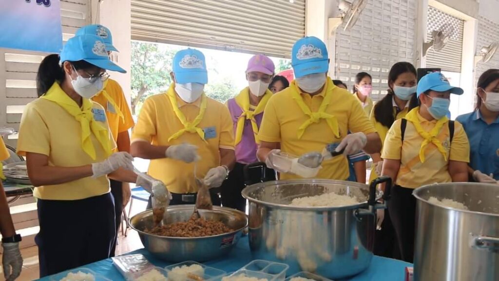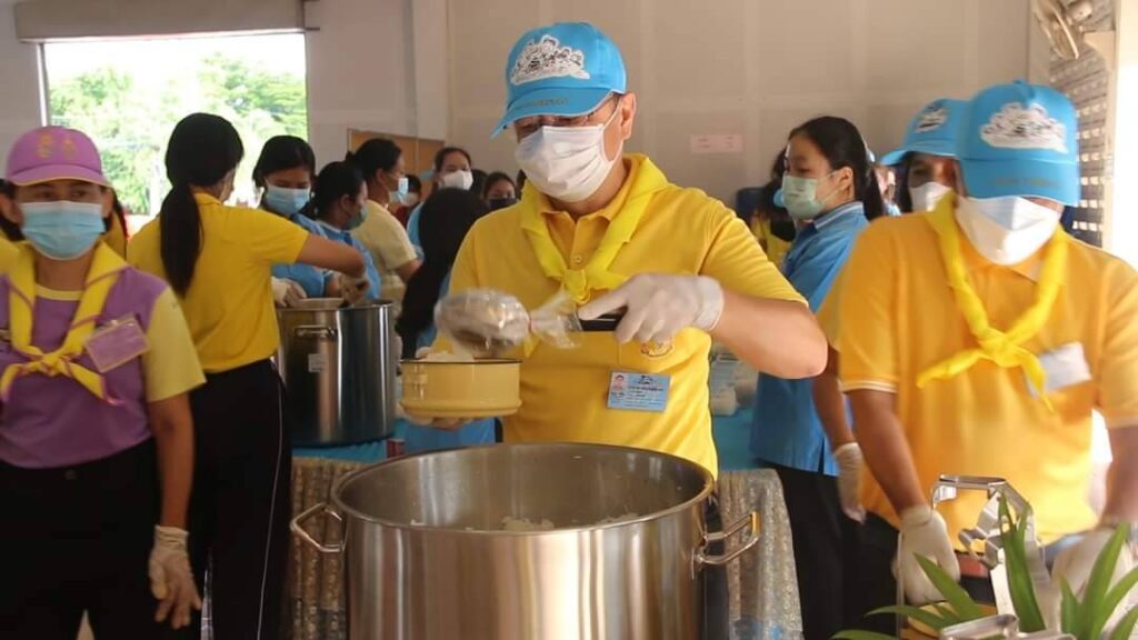 วันเสาร์ที่ 8 ตุลาคม 2565 นายสุพจน์ ยศสิงห์คำ ผู้ว่าราชการจังหวัดสิงห์บุรี พร้อมนายสมชาย ลีหล้าน้อย รองผู้ว่าราชการจังหวัดสิงห์บุรี ปลัดจังหวัดสิงห์บุรี และหัวหน้าส่วนราชการ ลงพื้นที่ให้กำลังใจนักศึกษาอาชีวศึกษาและบุคลากรที่ปฏิบัติหน้าที่โรงครัวพระราชทานฯ เพื่อช่วยเหลือผู้ประสบอุทกภัยในพื้นที่อำเภอพรหมบุรี ณ หอประชุมอำเภอพรหมบุรี จังหวัดสิงห์บุรี โดยมี นายสุรสิทธิ์ จันอุทา นายอำเภอพรหมบุรี นายพีรยศ นันทแพศย์ ปลัดอำเภอหัวหน้ากลุ่มงานบริหารการปกครอง กลุ่ม/องค์กร ตำรวจและจิตอาสาพระราชทาน ร่วมกิจกรรมโรงครัวพระราชทาน นำโดยผู้ว่าราชการจังหวัดสิงห์บุรีและรองผู้ว่าราชการจังหวัดสิงห์บุรี ร่วมประกอบอาหารบนรถและบรรจุใส่กล่องเพื่อแจกจ่ายให้กับประชาชนที่ได้รับความเดือดร้อนจากอุทกภัยในพื้นที่ตำบลพระงามและตำบลบ้านหม้อ อำเภอพรหมบุรี จำนวน 750 กล่อง อำเภอเมืองสิงห์บุรี จำนวน 250 กล่อง และถวายปิ่นโตให้วัดที่ประสบอุทกภัยในพื้นที่อำเภอพรหมบุรี โรงครัวพระราชทานฯ ดำเนินการตั้งแต่วันที่ 7 – 9 ตุลาคม 2565 รวมระยะเวลา 3 วัน ซึ่งในวันนี้เป็นวันที่ 2 ที่ดำเนินการประกอบอาหาร เมนูอาหารในวันนี้ประกอบด้วยกระเพราไข่ดาว