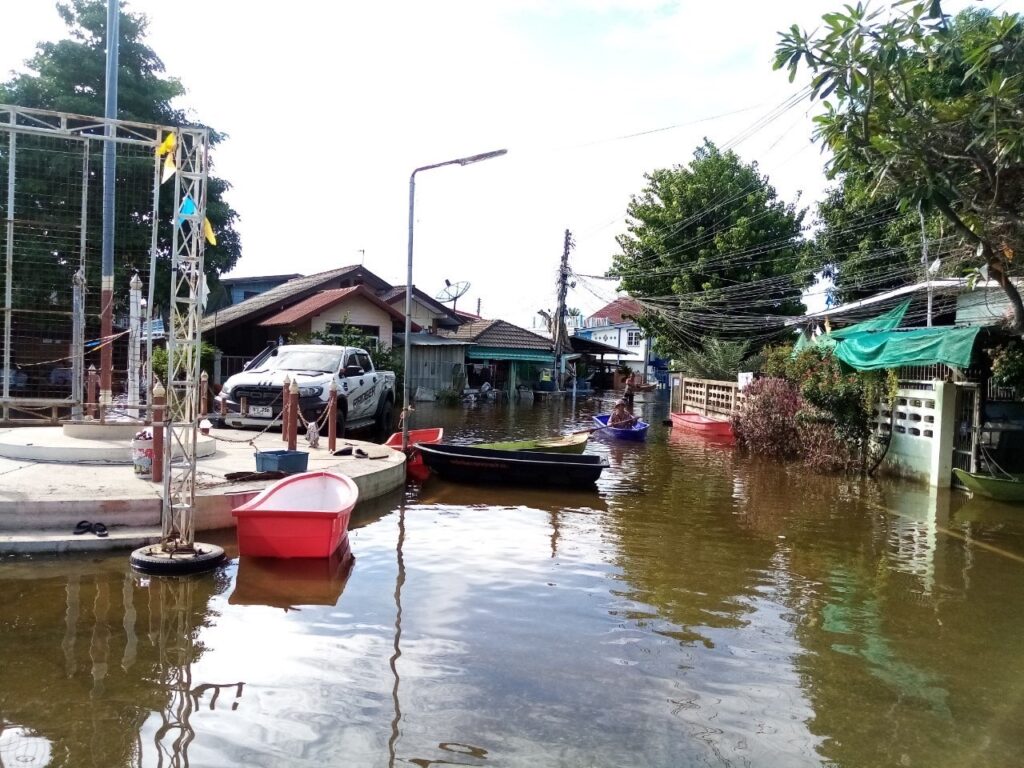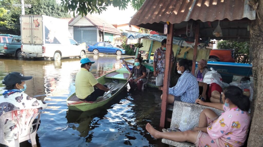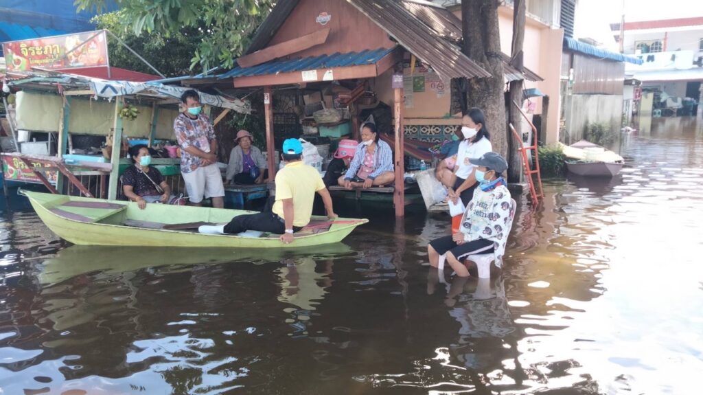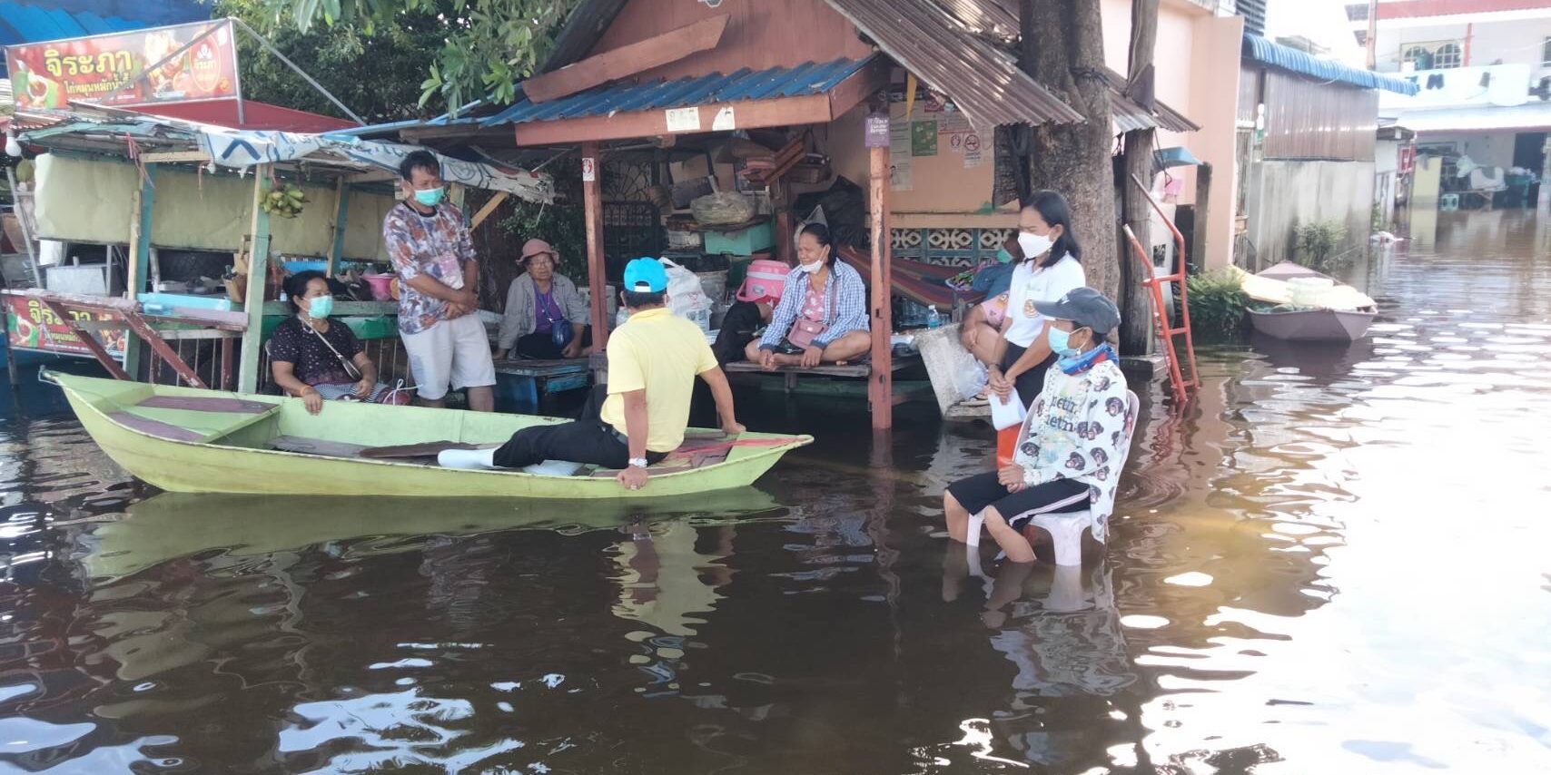 พายเรือ ลงพื้นที่เยี่ยมประชาชนที่ความเดือดร้อนที่ถูกน้ำท่วม