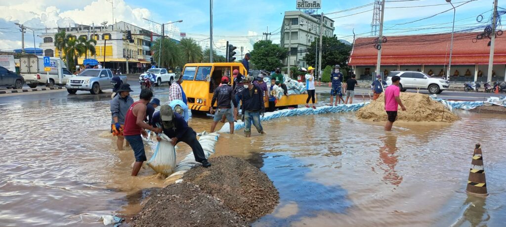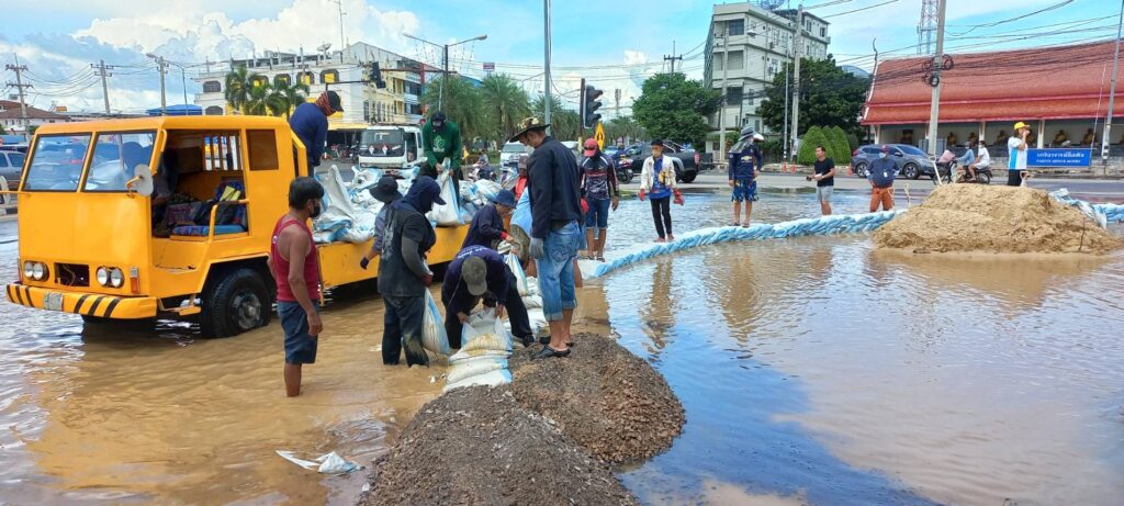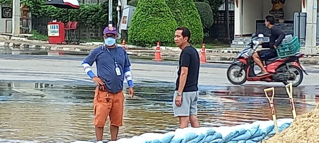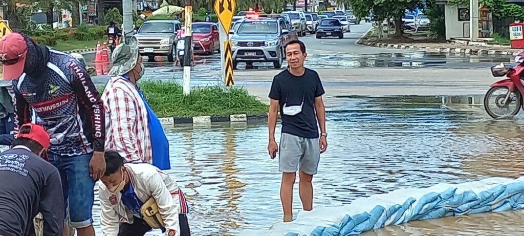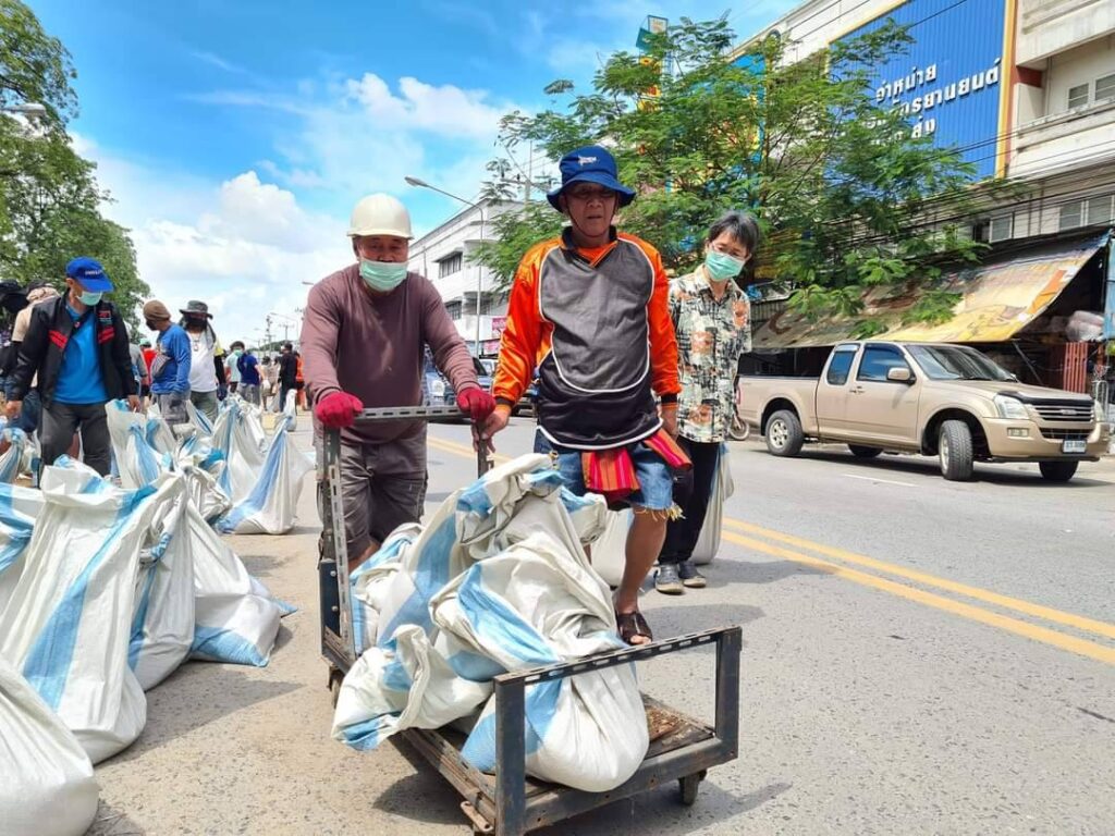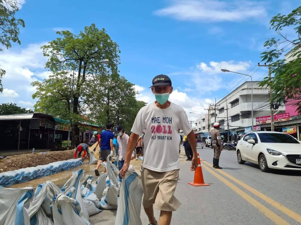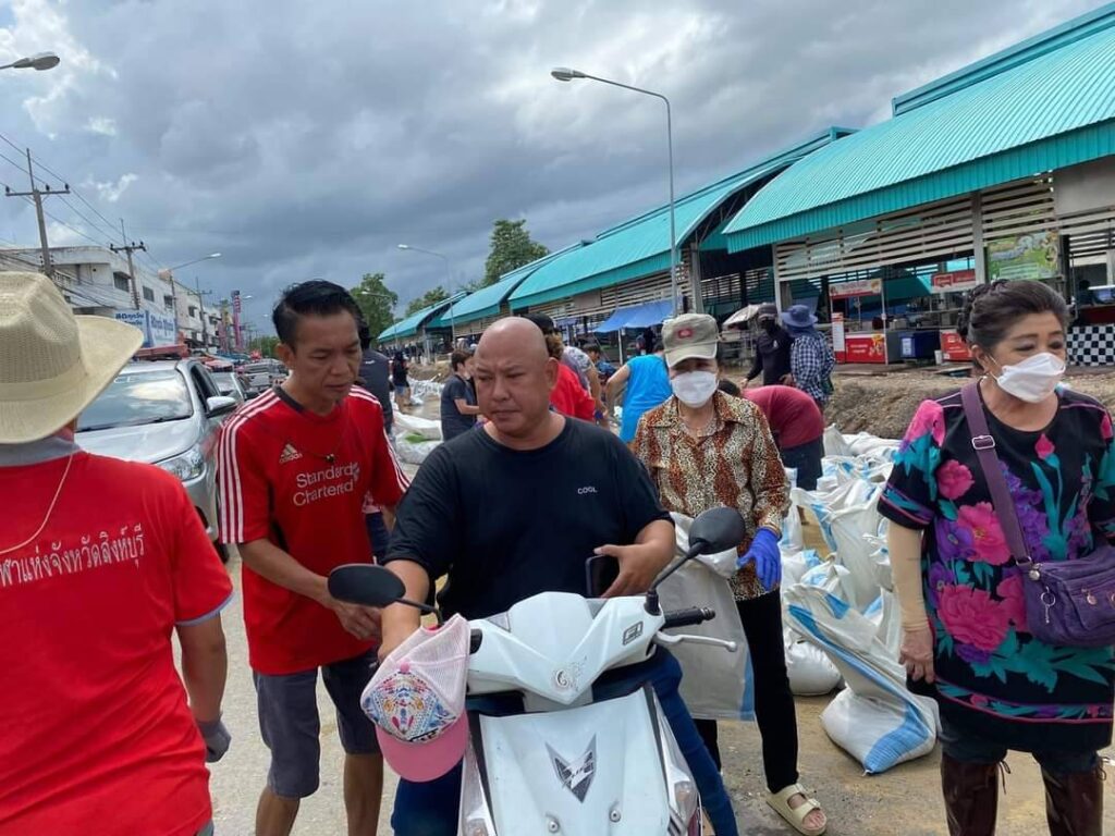 นายสมชาย ลีหล้าน้อย รองผู้ว่าราชการจังหวัดสิงห์บุรี พร้อมหัวหน้าส่วนราชการ เจ้าหน้าที่เทศบาลเมืองสิงห์บุรี ทหาร ตำรวจ พ่อค้าประชาชน ร่วมแรงร่วมใจกันออกมาช่วยกรอกกระสอบทรายและเรียงเป็นแนวกั้นน้ำจากคลองบรมธาตุที่กำลังจะไหลเอ่อล้นซึมเข้าท่วมตลาดสดสิงห์บุรีเป็นแหล่งเศรษฐกิจที่สำคัญของจังหวัดสิงห์บุรีที่ประชาชนจังหวัดสิงห์บุรีและใกล้เคียงมาจับจ่ายซื้อของอุปโภคและบริโภคใช้ในชีวิตประจำวัน จึงจำเป็นต้องป้องกันเพื่อไม่ให้ประชาชนหาซื้อของกินของใช้ลำบาก