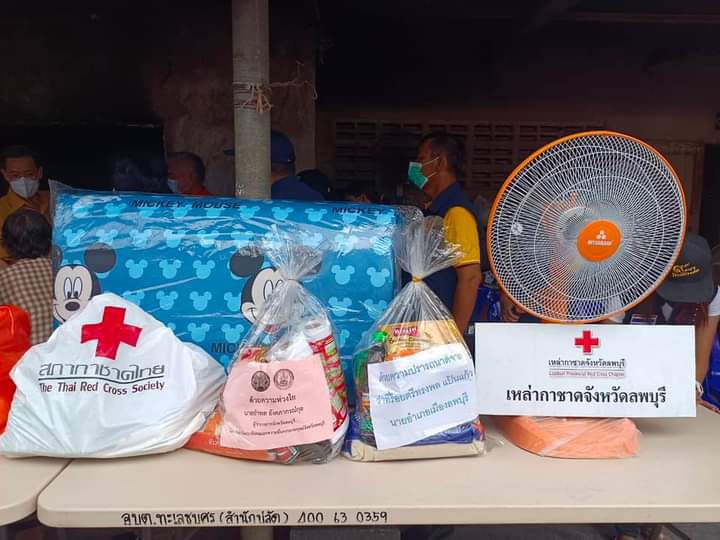 1.นายกเหล่ากาชาดจังหวัดลพบุรี มอบเครื่องอุปโภค/บริโภค และเงินสงเคราะห์ จำนวน 5,000 บาท ให้แก่ผู้ประสบภัย