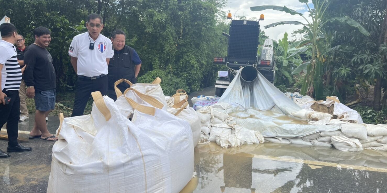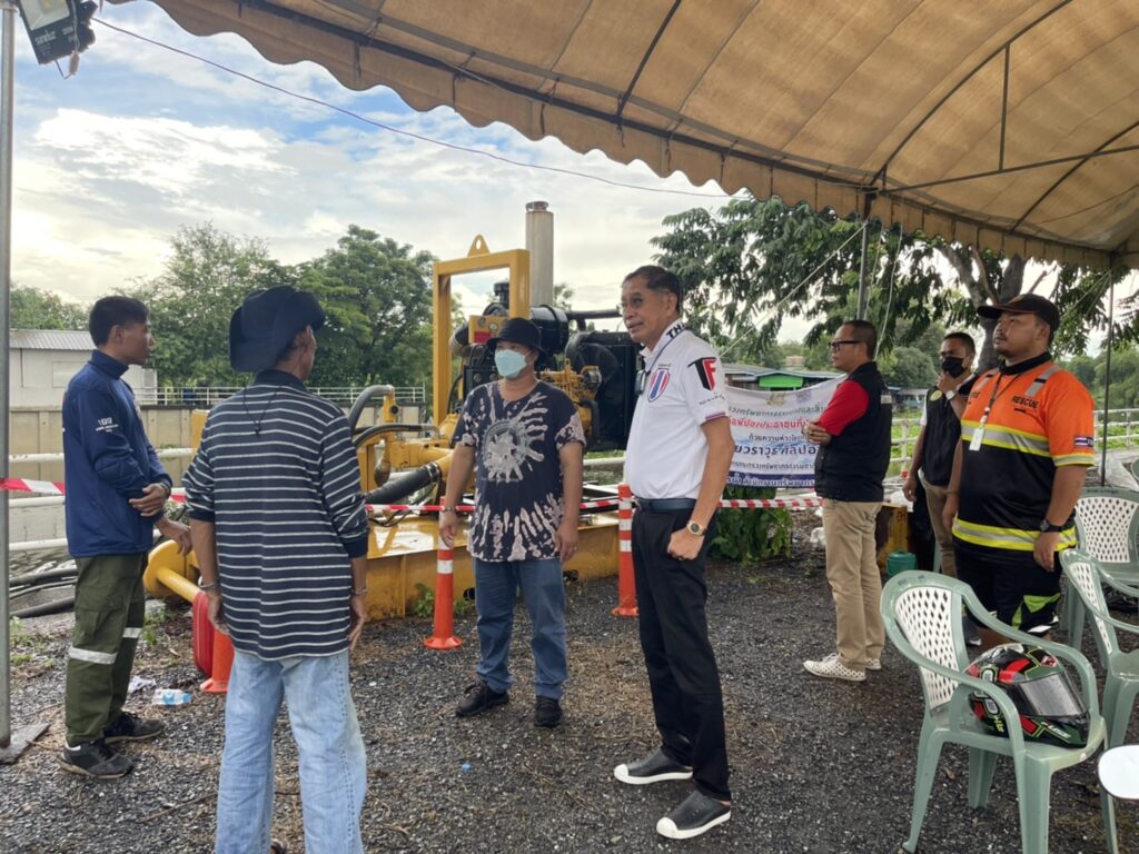เมื่อเวลา 15.30 น. วันที่ 9 ตุลาคม 2565 ที่บริเวณวัดถั่วทอง ตำบลบ้านปทุม อำเภอสามโคก จังหวัดปทุมธานี พล.ต.ท.คำรณวิทย์ ธูปกระจ่าง นายก อบจ.ปทุมธานี และทีมงาน ร่วมตระเวนดูสถานการณ์น้ำตลอดแนวริมฝั่งแม่น้ำเจ้าพระยา เพื่อเสริม ถุงบิ๊กแบ็คและกระสอบทรายภจป้องกันน้ำท่วมพื้นที่เศษรฐกิจปทุมธานี และตั้งศูนย์อำนวยการช่วยเหลือประชาชนและโรงครัวเพื่อทำอาหารให้ประชาชนที่เข้าออกบ้านลำบาก และได้เดินทางไปประตูน้ำเชียงรากใหญ่ วัดถั่วทองเพื่ออำนวยการป้องก้นน้ำท่วม