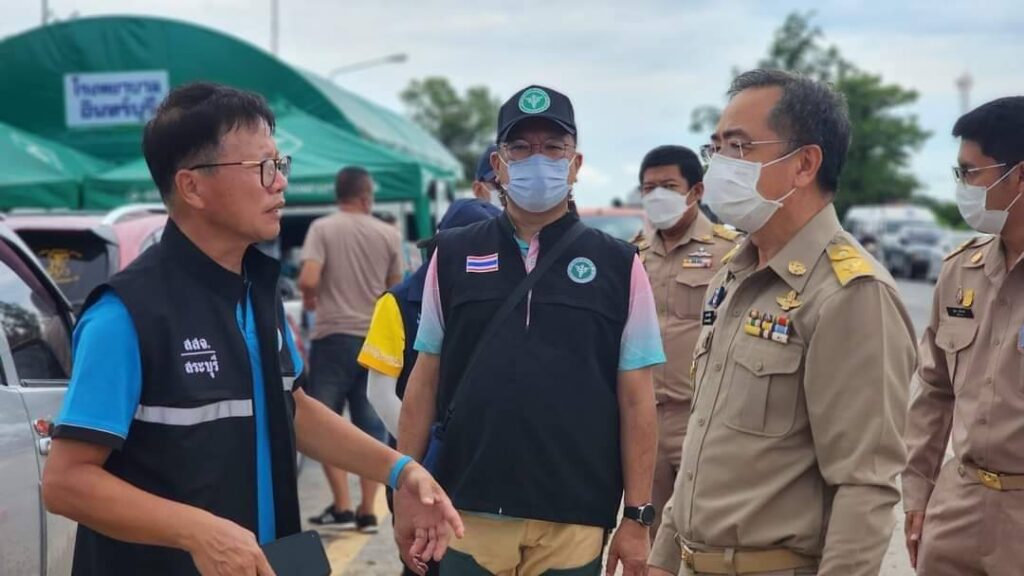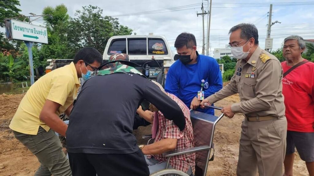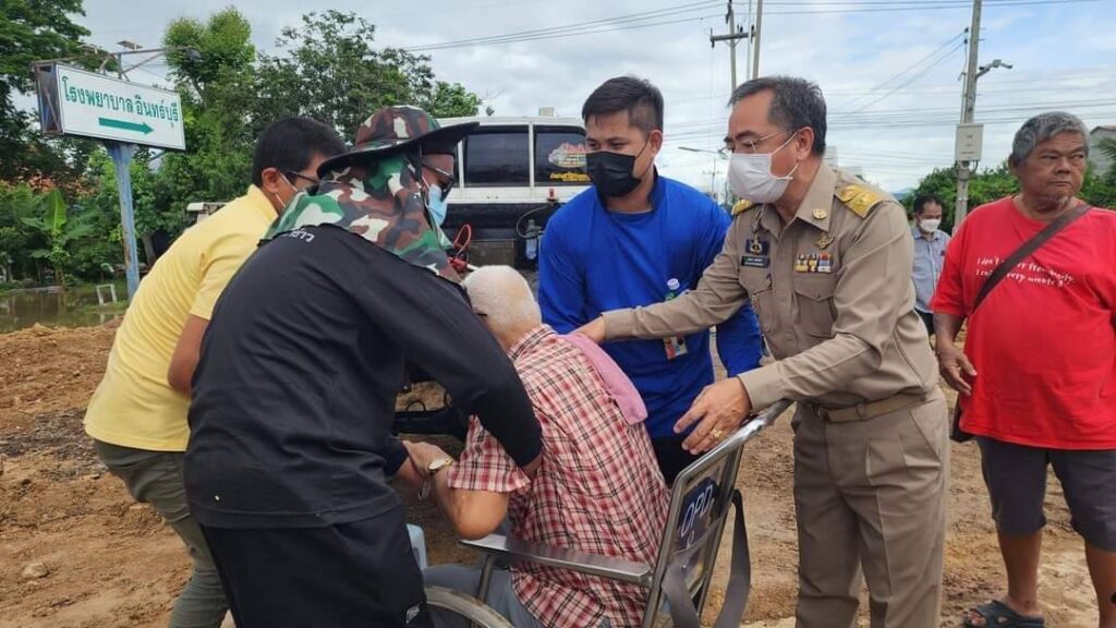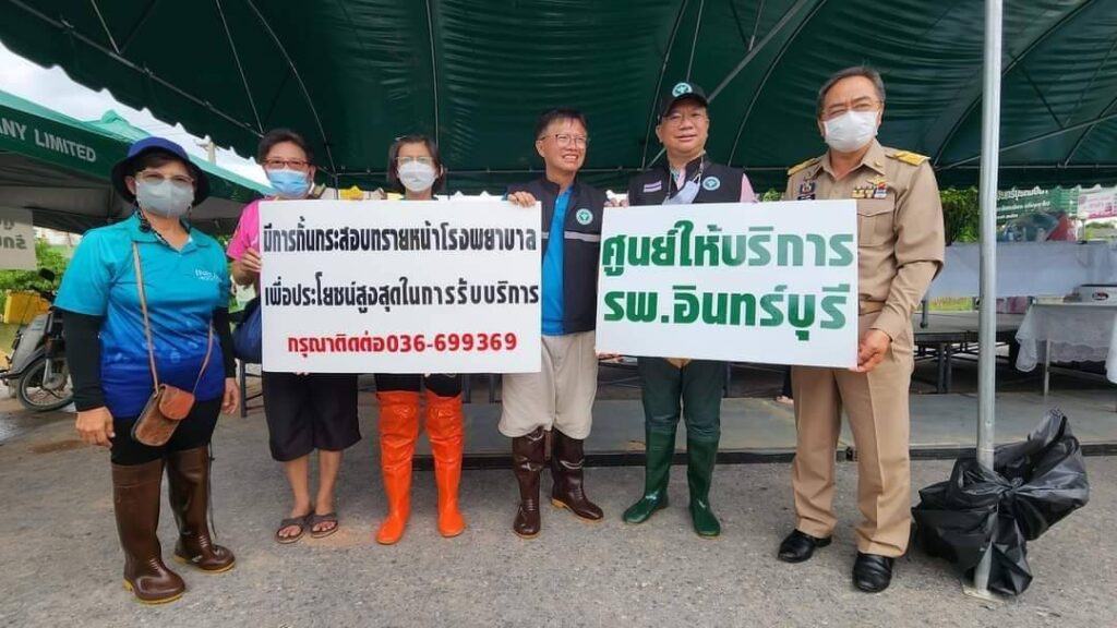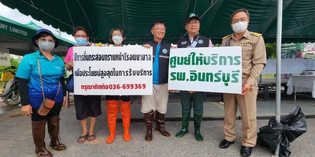 นายสุพจน์ ยศสิงห์คำ ผู้ว่าราชการจังหวัดสิงห์บุรี ลงพื้นที่หน้าโรงพยาบาลอินทร์บุรี เนื่องจากเกิดผลกระทบจากแม่น้ำเจ้าพระยา ไหลข้ามถนนเข้าฝั่งโรงพยาบาล ขณะนี้ เจ้าหน้าที่จึงจัดตั้งศูนย์บริการหน่วยเคลื่อนที่ด้านหน้าโรงพยาบาลอินทร์บุรี ให้ความสะดวกพี่น้องประชาชนเรียบร้อยแล้ว โดยได้รับความสะดวกโต๊ะวางอุปกรณ์จากองค์การบริหารส่วนจังหวัดสิงห์บุรี โดยช่วงเช้า
