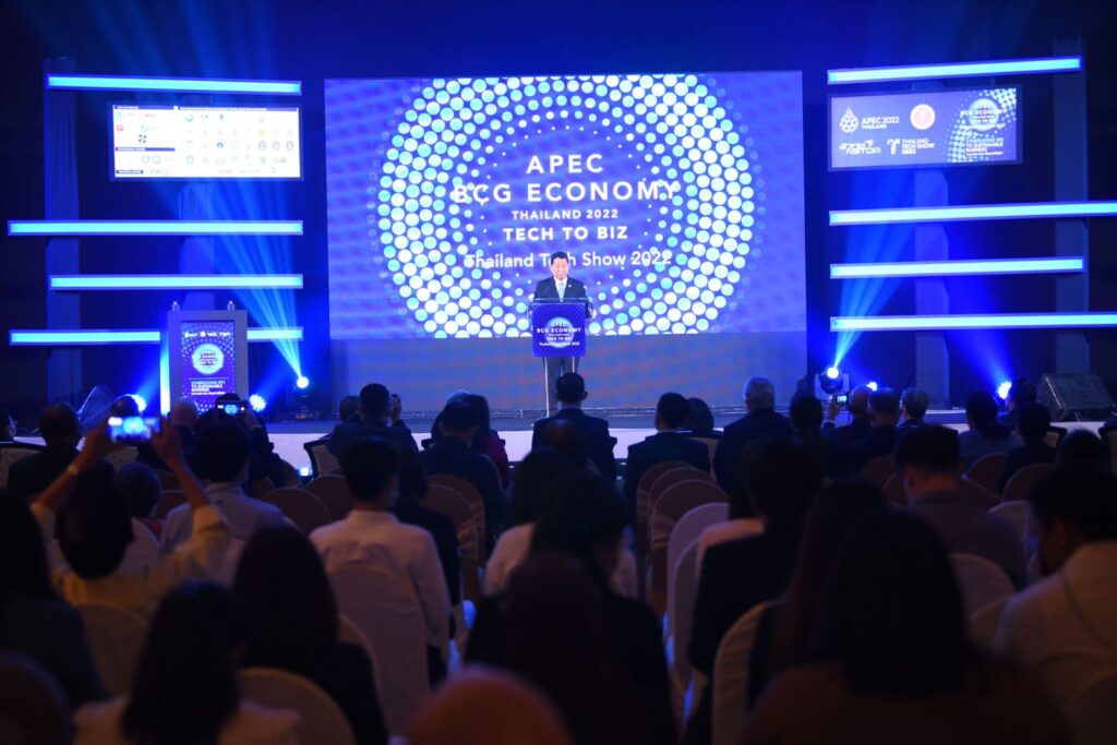 ศาสตราจารย์ ดร.ชูกิจ ลิมปิจำนงค์ ผู้อำนวยการ (สวทช.) กล่าวว่า งานนี้จัดขึ้นเพื่อเป็นงานประชุมและแสดงนิทรรศการนวัตกรรมจากการวิจัยและพัฒนาของ (สวทช.) รวมถึงหน่วยงานพันธมิตรทั้งในและต่างประเทศ ประกอบด้วยภาคเอกชน หน่วยงานวิจัย และสถาบันการศึกษา โดยนวัตกรรมที่นำมาจัดแสดง จะเป็นผลงานที่พร้อมส่งต่อให้กับผู้ประกอบการหรือนักลงทุนที่สนใจนำไปต่อยอดผลิตและจำหน่ายเชิงพาณิชย์ได้ ซึ่งจะเป็นการแสดงความสามารถและศักยภาพของงานวิจัยไทย และเนื่องจากประเทศไทยในฐานะเจ้าภาพการจัดประชุมผู้นำเขตเศรษฐกิจเอเปค ในปี 2565 ซึ่งเป็นเวทีสำคัญที่ประเทศไทยได้แสดงวิสัยทัศน์ของยุทธศาสตร์ชาติเรื่องเศรษฐกิจ BCG (Bio-Circular-Green Economy) หรือ โมเดลเศรษฐกิจสู่การพัฒนาที่ยั่งยืนโดยการนำวิทยาศาสตร์ เทคโนโลยีและนวัตกรรมไปยกระดับความสามารถในการแข่งขัน ซึ่ง (สวทช.) ในฐานะหน่วยงานหลักของประเทศในการขับเคลื่อนเรื่องเศรษฐกิจ BCG ถือเป็นภารกิจหลักในการขับเคลื่อนและผลักดันให้เกิดกิจกรรมที่ส่งเสริมโอกาสความร่วมมือทั้งด้านการค้าการลงทุนและความร่วมมือทางวิชาการ จึงเป็นที่มาของการจัดงาน APEC BCG Economy Thailand 2022: Tech to Biz (Thailand Tech Show2022) ในครั้งนี้