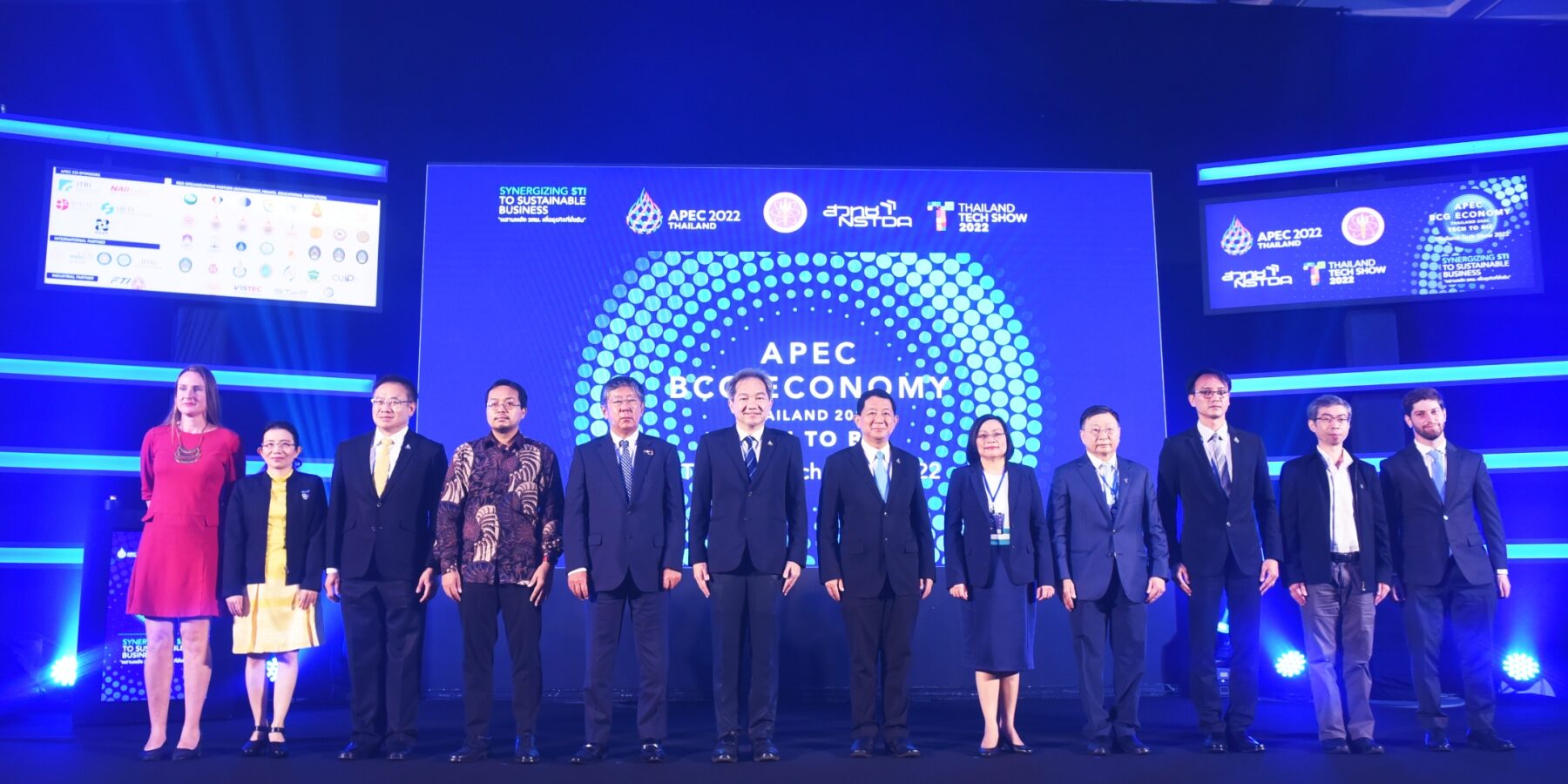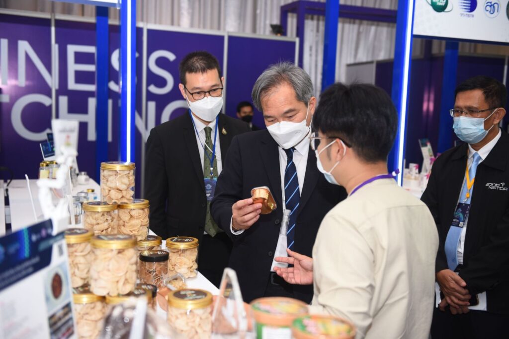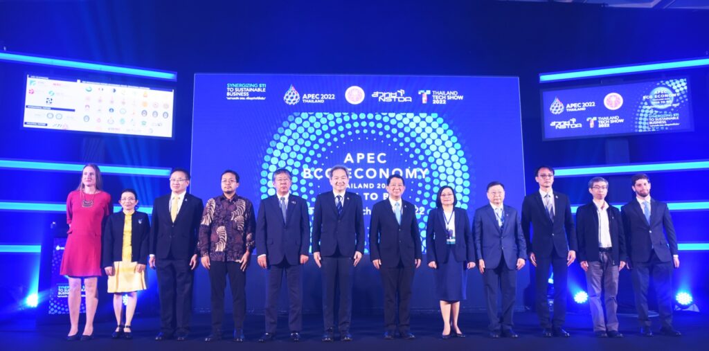 วันที่ 10 ตุลาคม 2565 ณ เซ็นทาราแกรนด์ เซ็นทรัลพลาซา ลาดพร้าว กรุงเทพฯ : กระทรวงการอุดมศึกษา วิทยาศาสตร์ วิจัยและนวัตกรรม (อว.) โดยสำนักงานพัฒนาวิทยาศาสตร์และเทคโนโลยีแห่งชาติ (สวทช.) นำโดย ศาสตราจารย์ ดร.นายแพทย์สิริฤกษ์ ทรงศิวิไล ปลัดกระทรวง (อว.) พร้อมด้วยศาสตราจารย์ ดร.ชูกิจ ลิมปิจำนงค์ ผู้อำนวยการ (สวทช.) จับมือพันธมิตรองค์กรภาครัฐ เอกชน และสถาบันการศึกษาด้านวิทยาศาสตร์และเทคโนโลยี ทั้งในและต่างประเทศกว่า 40 หน่วยงาน เปิดงานประชุมและนิทรรศการ APEC BCG Economy Thailand 2022 : Tech to Biz (Thailand Tech Show 2022) ภายใต้แนวคิด ผสานพลัง (วทน.) เพื่อธุรกิจที่ยั่งยืน (Synergizing STI to Sustainable Business) เพื่อเป็นกิจกรรมสนับสนุนการเป็นเจ้าภาพประชุมผู้นำเขตเศรษฐกิจเอเปค (APEC 2022 Thailand) และเปิดงาน Thailand Tech Show 2022 เวทีแสดงผลงานทางวิชาการ เทคโนโลยีและนวัตกรรมวิจัยที่พร้อมต่อยอดธุรกิจ พร้อมทั้งเป็นการส่งเสริมโอกาสความร่วมมือด้านธุรกิจ วิชาการระหว่างสมาชิกเอเปคให้เกิดผลลัพธ์ที่เป็นรูปธรรม ซึ่งจัดขึ้นระหว่างวันที่ 10-11 ตุลาคม 2565 ที่ เซ็นทาราแกรนด์ เซ็นทรัลพลาซา ลาดพร้าว กรุงเทพฯ