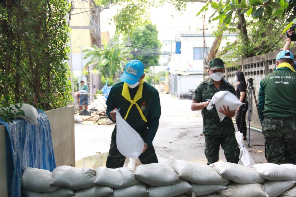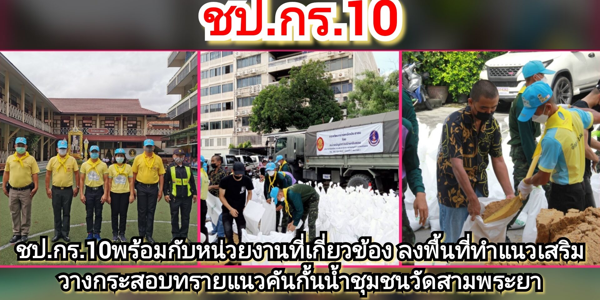 เมื่อวันที่ (7ต.ค.65) ผ่านมา เวลา 09:30 น. ชป.กร.10 ร่วมกับ ป.1พัน.1.รอ. สนง.เขตพระนคร และ จิตอาสา904 ลงพื้นที่ ทำแนวเสริมวางกระสอบทรายคันกั้นน้ำ บริเวณชุมชุมวัดสามพระยา สามเสนซอย3 เขตพระนคร กทม.