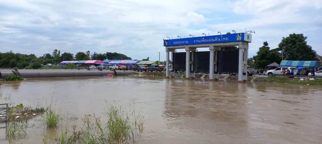 เมื่อเวลาประมาณ 10.00 น. วันนี้ ( 11 ตุลาคม 2565 ) ที่บริเวณประตูระบายน้ำบางโฉมศรี ตำบลชี้น้ำร้าย อำเภออินทร์บุรี ชาวบ้านในพื้นที่ตำบลท่างาม และตำบลชีน้ำร้าย ที่ได้รับผลกระทบจากน้ำท่วมจนไม่สามารถพักอาศัยอยู่ได้ ได้มารวมตัวกันจำนวนประมาณ 300 – 400 คน เพื่อเรียกร้องขอให้กรมชลประทาน หรือผู้มีอำนาจ เปิดประตูระบายน้ำบางโฉมศรี ปล่อยน้ำเข้าคลองบางโฉมศรี เพื่อให้ระดับน้ำลดลงเป็นการบรรเทาความเดือนร้อนของผู้ที่เดือดร้อนลงบ้าง เพราะบ้านถูกน้ำท่วมถึงชั้นที่สองแล้ว และประชาชนที่พักอาศัยอยู่บนถนนก็ยังถูกน้ำเอ่อมาท่วมอีก