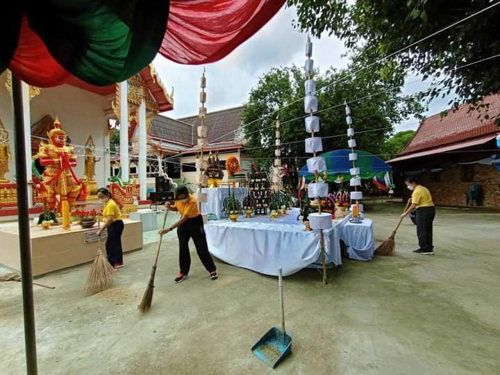 ร่วมกันทำความสะอาด พัฒนาศาสนสถาน บริเวณภายในและภายนอกวัด เพื่อจัดเตรียมสถานที่ทำบุญตักบาตรเทโว วันออกพรรษา