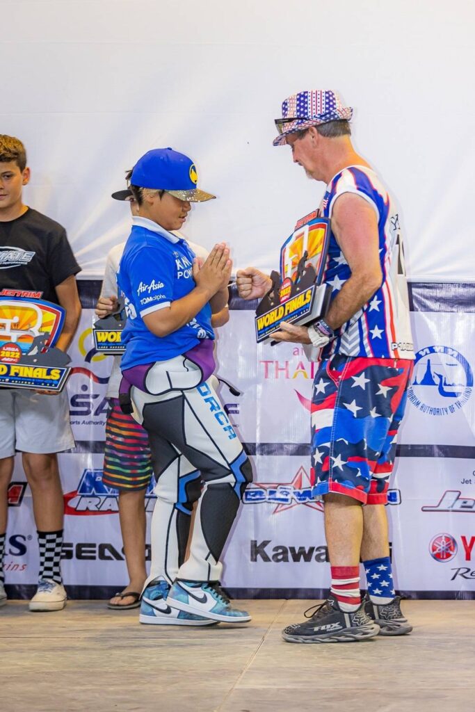 @@@น้องออก้า นักกีฬาเจ็ตสกี “ทีมชาติไทย” ที่อายุน้อยที่สุดในไทย ลงแข่งขันถึง 3 รุ่น โดยรุ่น Junior Ski 10-12 Stock สามารถคว้าแชมป์ที่1 ของโลกและอายุน้อยที่สุดในโลก ส่วนรุ่น Pro Sport Salom ถือว่าเหนือความคาดหมาย น้องออก้าสามารถคว้าอันดับที่ 2 มาครอง และอีกรุ่น Junior Ski 10-12 Stock Lites ได้อันดับที่ 8 ของโลก งานนี้ส่งผลให้ผู้จัดการแข่งขันยกให้ น้องออก้า เป็น PERFECT GAME รุ่นที่อายุน้อยที่สุด เพราะไม่ง่ายเลยที่จะเข้าที่ 1 ได้ทั้ง 3 moto