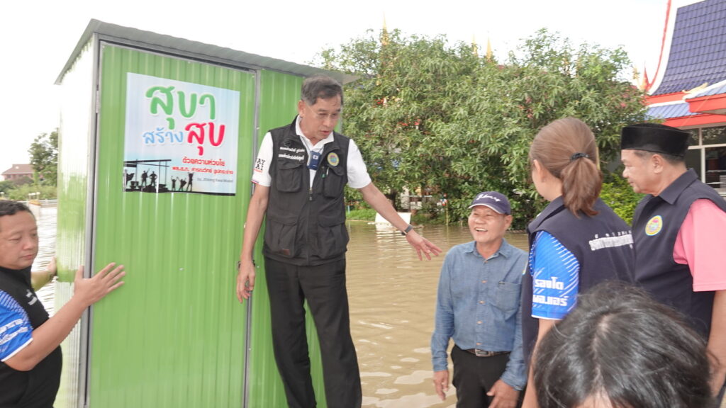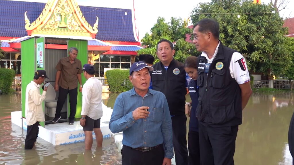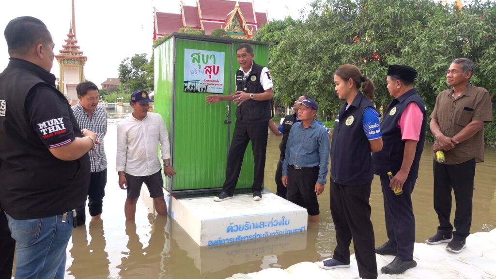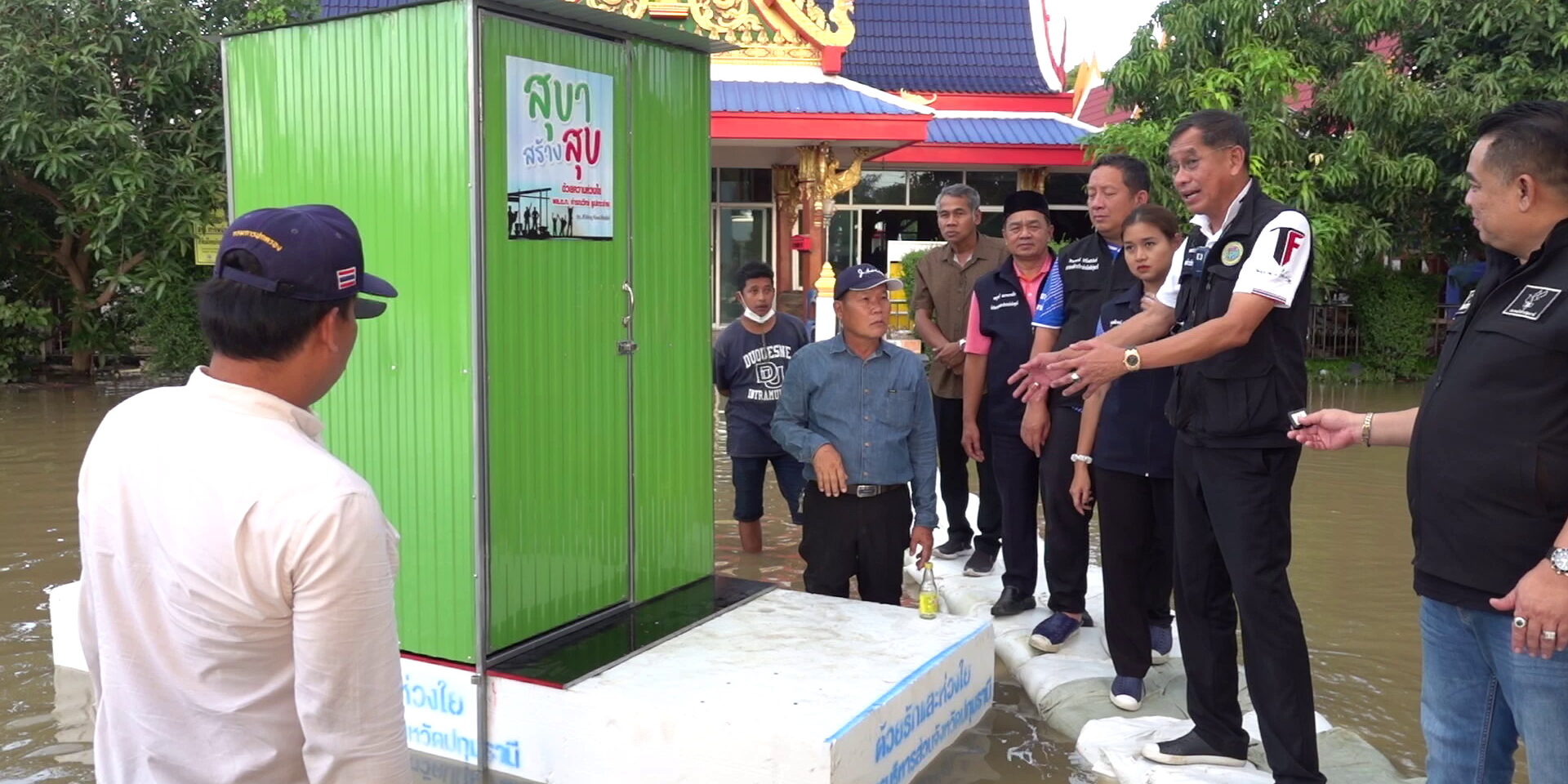 นายยอด ภู่เฉลิมตระกูล นายก อบต.คลองควาย กล่าวว่า เนื่องจากเมื่อวานนี้ท่าน พล.ต.ท.คำรณวิทย์ ธูปกระจ่าง นายก อบจ.ปทุมธานี ได้มาตรวจเยี่ยมศูนย์พักพิงที่องค์การบริหารส่วนตำบลคลองควาย จากนั้นได้พูดคุยหารือกันใช้แพโฟมทำห้องน้ำลอยน้ำ ท่านนายก อบจ.จึงให้ทำอย่างด่วนเลย ให้ทำภายในวันเดียวให้สำเร็จ จากนั้นท่านได้สั่งอีก 10 หลัง เพื่อที่จะมอบให้ที่ตำบลคลองควาย ต้องขอบคุณท่านนายก อบจ.เป็นอย่างสูง ที่ได้ให้ความกรุณาพี่น้องประชาชนชาวตำบลคลองควาย ที่ตอนนี้ได้รับผลกระทบน้ำท่วมห้องน้ำใช้ไม่ได้ เมื่อได้ห้องน้ำลอยน้ำด้วยแพโฟมก็สามารถบรรเทาทุกข์ความเดือดร้อนของพี่น้องประชาชนได้ได้เยอะเลย.
