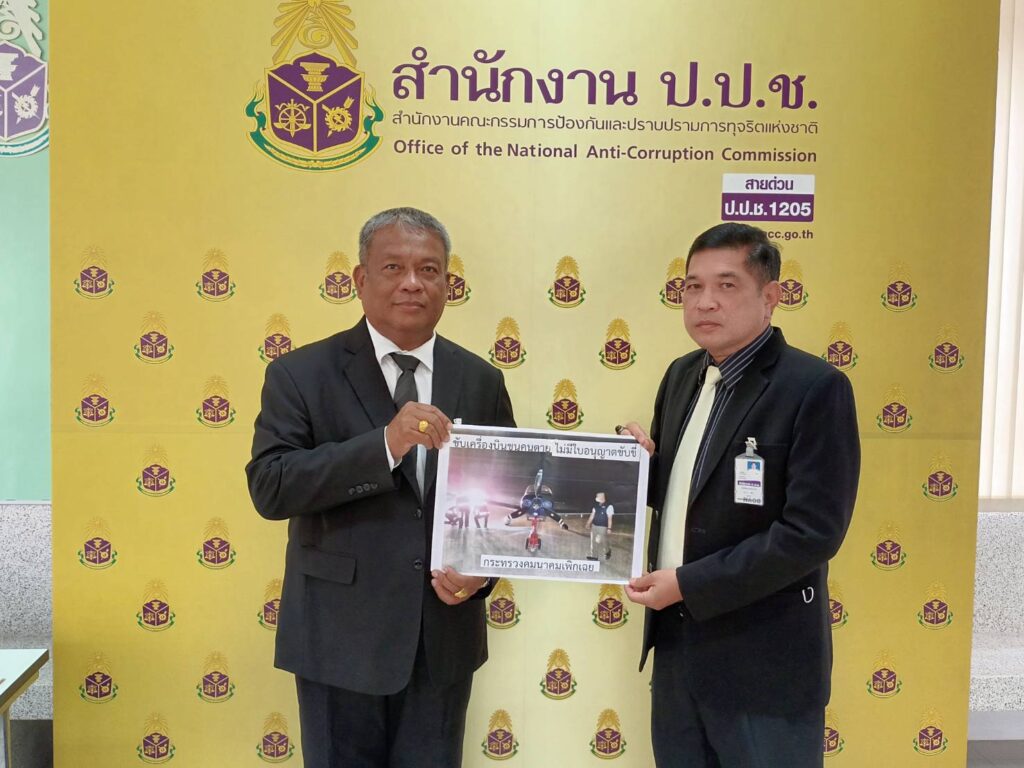 จึงขอให้ดำเนินการตรวจสอบเรื่องดังกล่าวให้เกิดความเป็นธรรมและคุ้มครองความปลอดภัยกับประชาชนทั่วไปซึ่งอาจถูกเครื่องบินที่ขับโดยนักบินที่ไม่มีใบอนุญาตพุ่งชนประชาชนหรือสถานที่ราชการและสถานที่สำคัญของชาติได้ และให้ดำเนินการตามกฎหมาย ป.ป.ช. กับเจ้าหน้าที่ของรัฐทุกหน่วยให้ถึงที่สุด โดยให้กันข้าราชการชั้นผู้น้อยที่ให้ความร่วมมือในการสอบสวนไว้เป็นพยาน