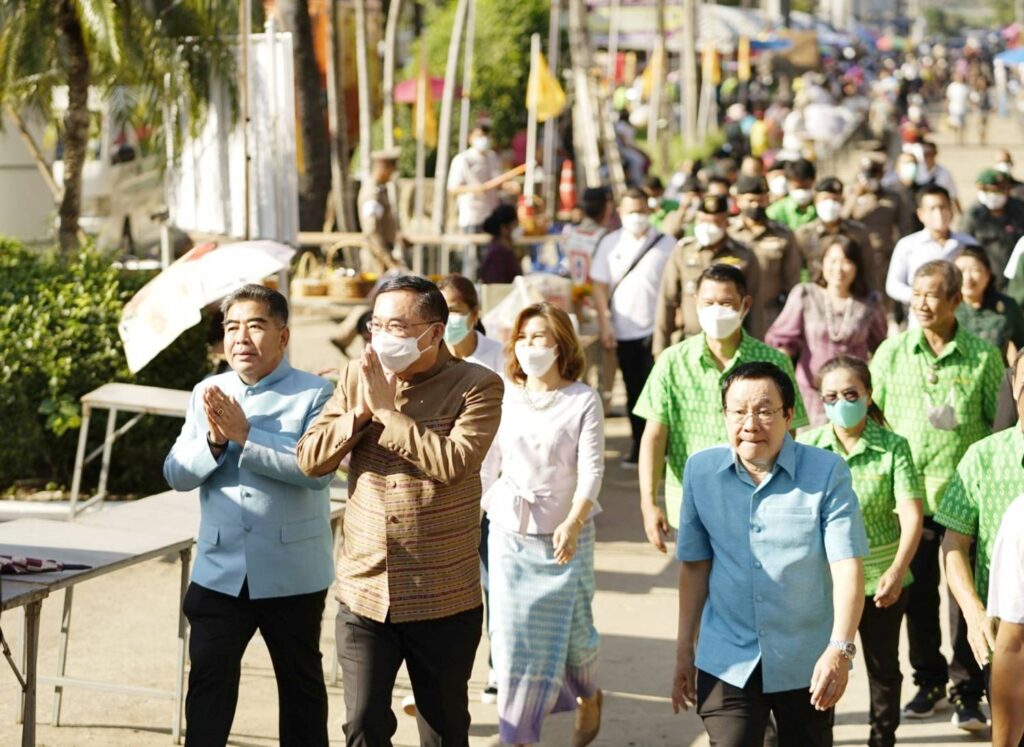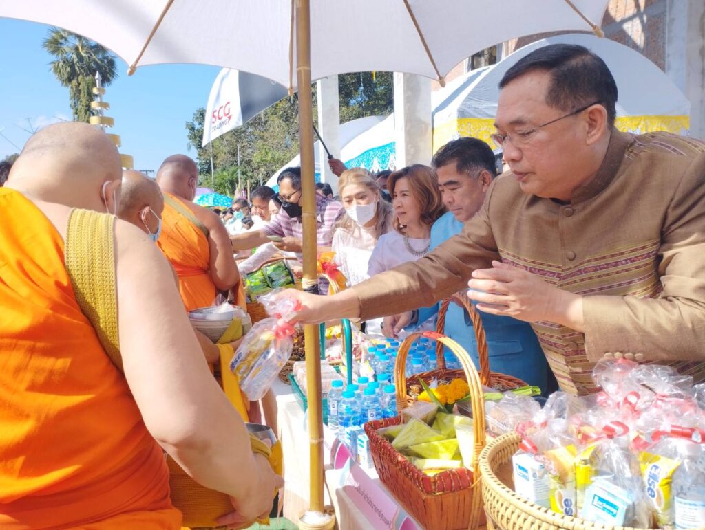 โอกาสนี้ นายอนุชา นาคาศัย รัฐมนตรีประจำสำนักนายกรัฐมนตรีและคณะได้ร่วมตักบาตรเทโวโรหณะพระสงฆ์จำนวน 300 รูป และพบปะผู้นำและประชาชน เยี่ยมชมสินค้าOTOP ของชุมชนในพื้นที่ ก่อนเดินทางกลับ