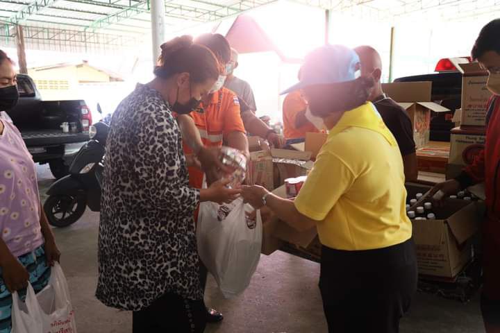ข้าวสาร อาหารแห้ง น้ำดื่ม และสิ่งของช่วยเหลือผู้ประสบอุทกภัยในพื้นที่