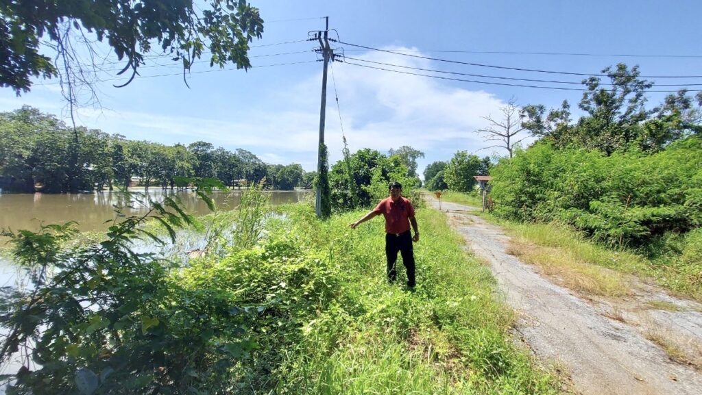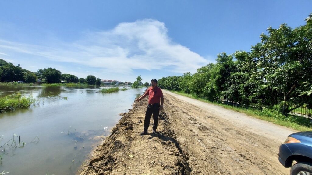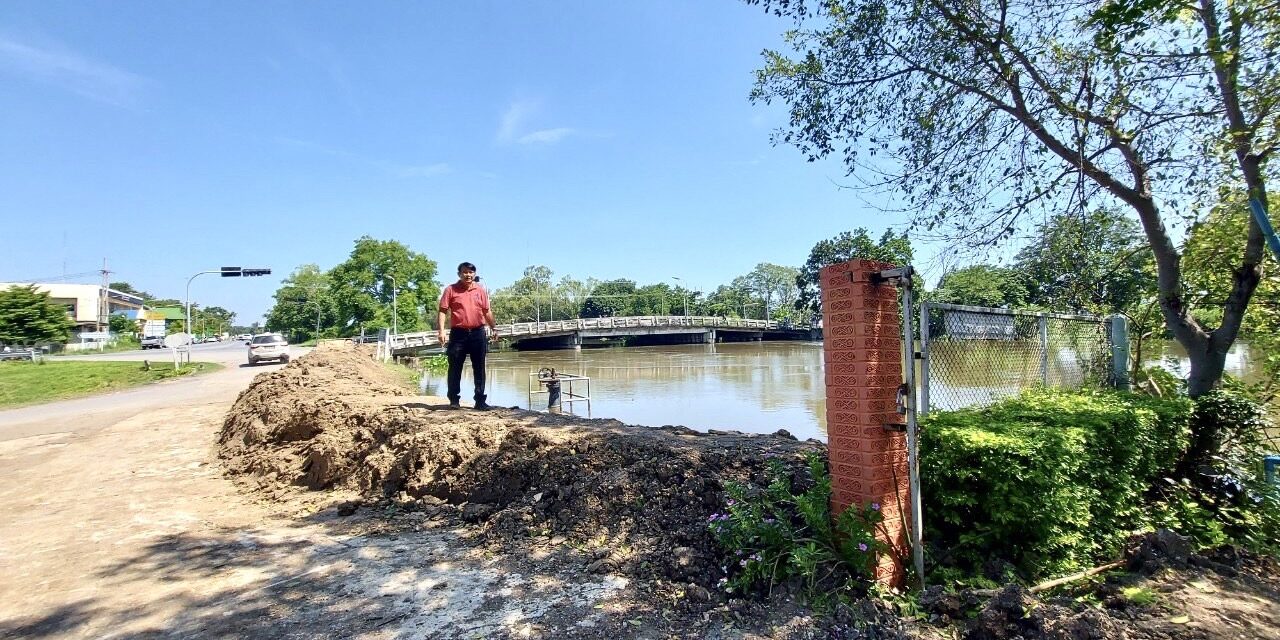 ในที่สุด คันดินกั้นนำ้ ป้องกันนำ้ ไหลล้น ข้าม คลองชัยนาท -ป่าสัก ไหลล้น ริมตลิ่งท่วม“หมู่บ้านริมชล” และบริเวณใกล้เคียง พื้นที่ติดต่อ ระหว่าง บริเวณ สะพาน 7.5 ถึง สะพาน 8