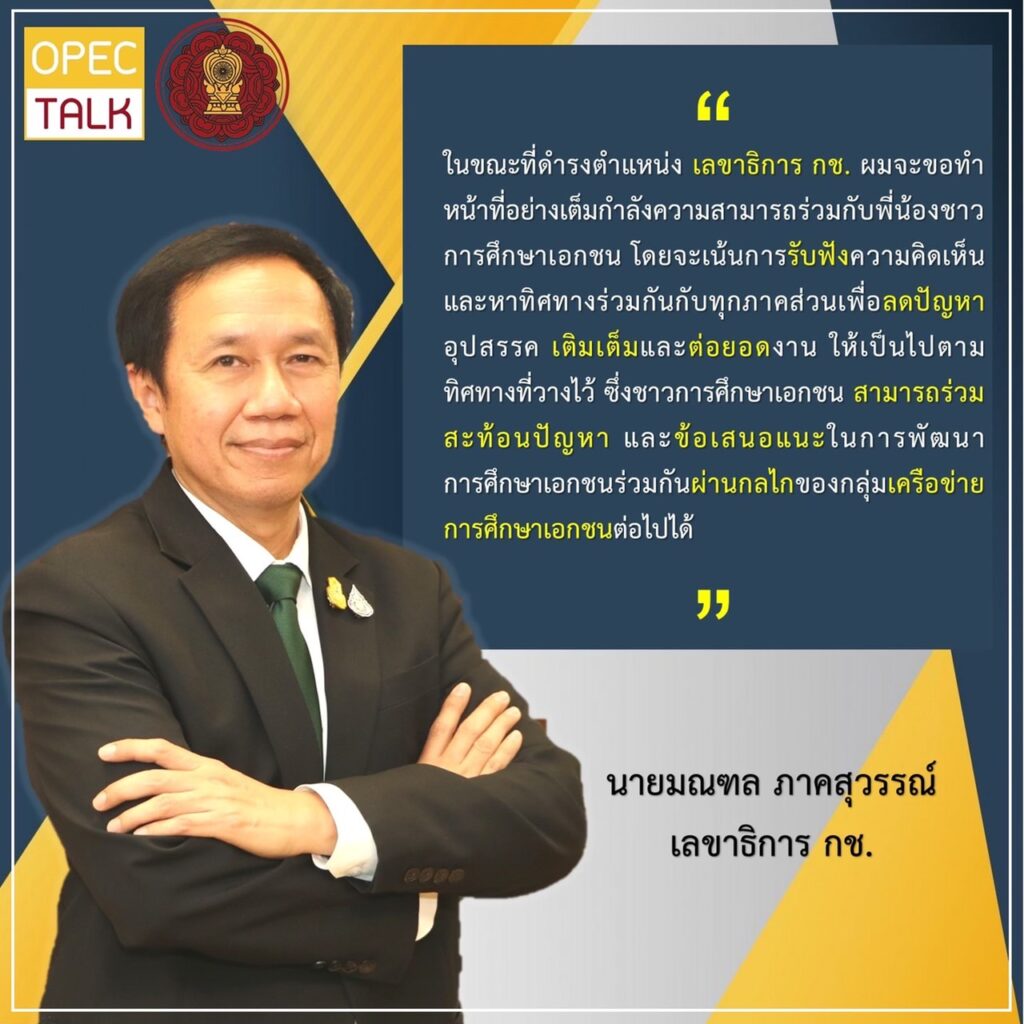 นายมณฑล ภาคสุวรรณ์ กล่าวว่า รู้สึกเป็นเกียรติและยินดีอย่างยิ่งที่ได้มีโอกาสทำงานร่วมกับพี่น้องชาวการศึกษาเอกชนอีกครั้ง และขอขอบพระคุณผู้บริหารระดับสูงของกระทรวงศึกษาธิการที่ไว้วางใจให้มาดำรงตำแหน่งดังกล่าว สำหรับแนวทางการทำงาน จะขับเคลื่อนการศึกษาเอกชนโดยยึดนโยบายและจุดเน้นของกระทรวงศึกษาธิการ ใน 3 มิติ ได้แก่ มิติที่ 1 ผู้เรียน ส่งเสริมให้ผู้เรียนเป็นคนเก่ง คนดี มีคุณภาพ โดยเน้นการส่งเสริม พัฒนาหลักสูตร การจัดการเรียนการสอน การวัดและประเมินผล การสร้างคุณลักษณะที่พึงประสงค์ พัฒนาทักษะอาชีพและเพิ่มขีดความสามารถในการแข่งขัน มิติที่ 2 สถานศึกษา ส่งเสริมสถานศึกษาให้มีคุณภาพ มีความเข้มแข็ง โดยผลักดันการแก้ไขพระราชบัญญัติโรงเรียนเอกชนฯ ทบทวน และปรับลดกฎระเบียบที่เป็นปัญหาอุปสรรคต่อการส่งเสริมการศึกษาเอกชนตามหลักการบริหารจัดการภาครัฐแนวใหม่ ศึกษาแนวทางการอุดหนุนค่าใช้จ่ายในการจัดการศึกษาขั้นพื้นฐานสำหรับผู้เรียน ศึกษาแนวทางการขอรับการสนับสนุนเงินอุดหนุนอาหารกลางวันสำหรับนักเรียนโรงเรียนเอกชนเพิ่มเติม ส่งเสริมสิทธิประโยชน์ และการลดหย่อนภาษีให้แก่สถานศึกษาทั้งในระบบและนอกระบบ และมุ่งเน้นการจัดการศึกษาเพื่อความปลอดภัยต่อผู้เรียน และ มิติที่ 3 การบริหารจัดการ ได้แก่