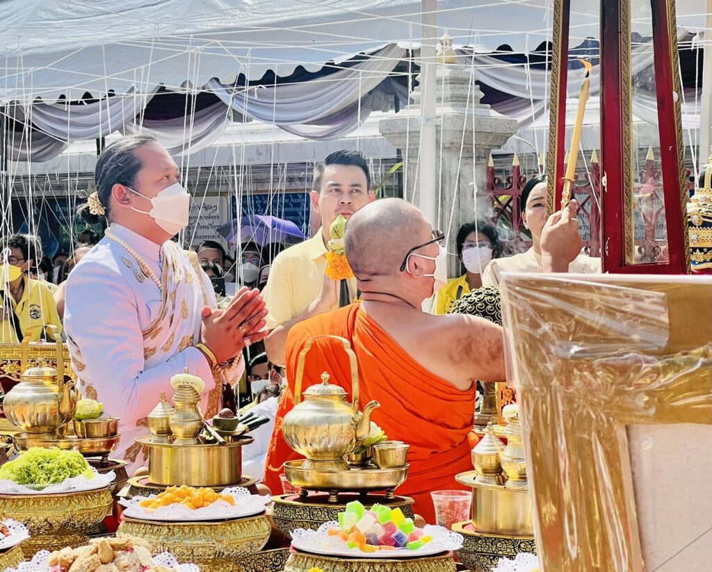 วันที่ 13 ต.ค.65 เวลา 09.00 น. : พระโสภณธรรมวงศ์ (เจ้าคุณน้อย) เจ้าอาวาสวัดอินทรวิหาร เป็นประธานพิธีบวงสรวงอัญเชิญรูปเหมือนเจ้าพระคุณสมเด็จพระพุฒาจารย์ (โต พฺรหฺมรํสี) ปางปัญญาบารมี (สมเด็จฯ ทันใจ) พร้อมด้วย ดร.พีรวัฒน์ ประธานกต.ตร.กทม.(ภาคประชาชน),ดร.ธัชวิน ประธานกต.ตร.บก.น.1 -ผศ.ดร.ชุติมา สุรเศรษฐ (ภริยา) จุดธูปเทียนบูชาพระรัตนตรัยและถวายพวงมาลา หน้าพระบรมฉายาลักษณ์ พระบาทสมเด็จพระบรมชนกาธิเบศร มหาภูมิพลอดุลยเดชมหาราช บรมนาถบพิตร โดยมี อ.โอเล่ ญาณสัมผัส,คุณ บุญชญา เดชาเจริญสิริ,คุณ อนุพันธ์-คุณ ประกายฝน-น้องมิคกี้ พุทธา,แขกผู้มีเกียรติและผู้มีจิตศรัทธาจำนวนมาก ร่วมพิธี ณ วัดอินทรวิหาร พระอารามหลวง บางขุนพรหม พระนคร