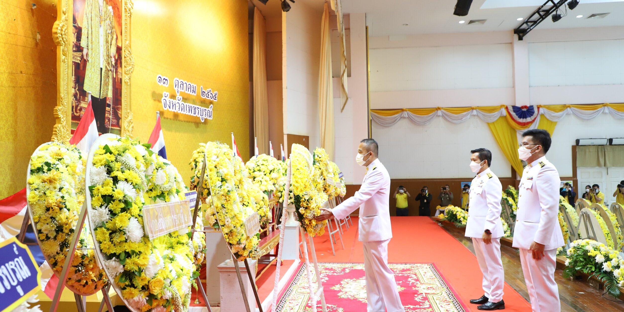 13 ตุลาคม 2565 เวลา 18.00 น. ที่หอประชุมศูนย์ราชการจังหวัดเพชรบูรณ์ นายกฤษณ์ คงเมือง ผู้ว่าราชการจังหวัดเพชรบูรณ์ เป็นประธานในพิธีวางพวงมาลา เนื่องในวันคล้ายวันสวรรคต พระบาทสมเด็จพระบรมชนกาธิเบศร มหาภูมิพลอดุลยเดชมหาราช บรมนาถบพิตร 13 ตุลาคม 2565 โดยมี รองผู้ว่าราชการจังหวัดเพชรบูรณ์ ตุลาการ อัยการ หัวหน้าส่วนราชการ ทหาร ตำรวจ สมาคม ชมรม และประชาชนจิตอาสา เข้าร่วม