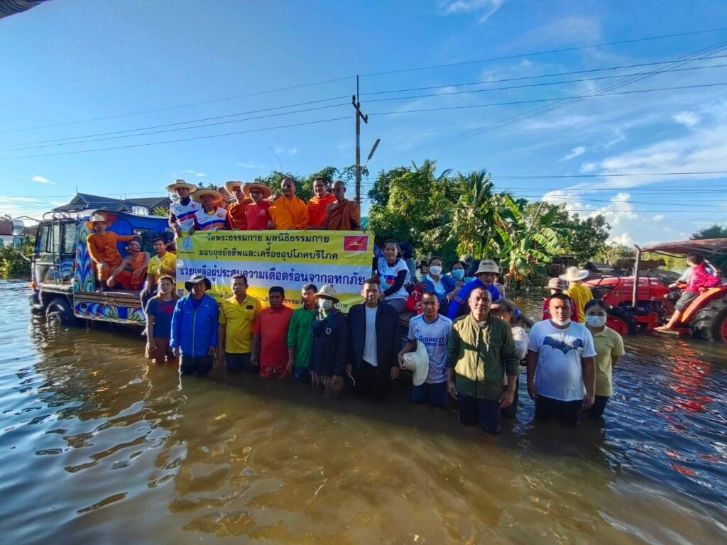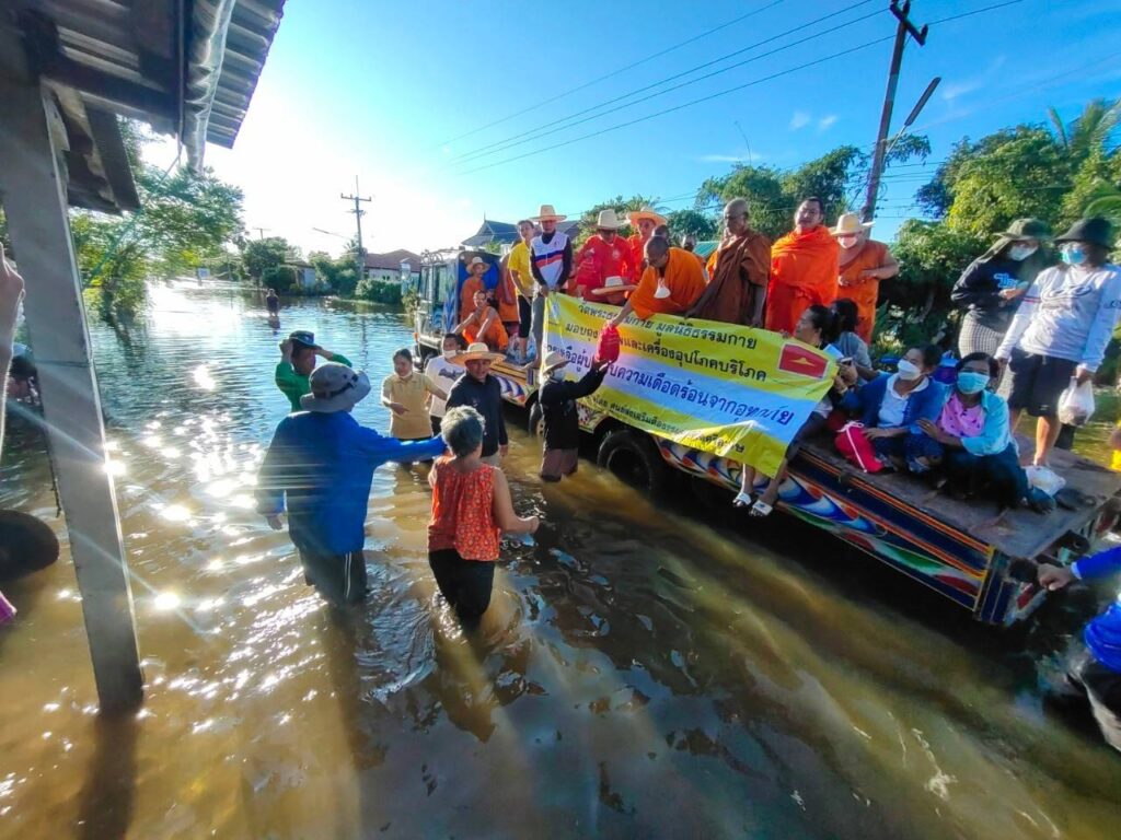 ด้านพระครูสมุห์สนิทวงศ์ วุฑฺฒิวํโส ผู้อำนวยการสำนักสื่อสารองค์กร วัดพระธรรมกาย เปิดเผยว่า รวมมอบถุงยังชีพ ตั้งแต่วันที่ 9 ก.ย.-13 ต.ค. 2565 วัดพระธรรมกาย มูลนิธิธรรมกาย ส่งมอบถุงยังชีพช่วยเหลือผู้ประสบภัยน้ำท่วมแล้ว 16 จังหวัด ได้แก่ ปทุมธานี พระนครศรีอยุธยา ศรีสะเกษ สระบุรี ลพบุรี นครนายก กำแพงเพชร อุบลราชานี นครราชสีมา นครปฐม มหาสารคาม นครสวรรค์ ชัยภูมิ อุทัยธานี ชัยนาท และขอนแก่น รวมจำนวน 9,200 ชุด ข้าวสาร 1,000 กิโลกรัม และบะหมี่กึ่งสำเร็จรูป 3,000 ถ้วย