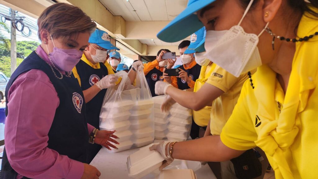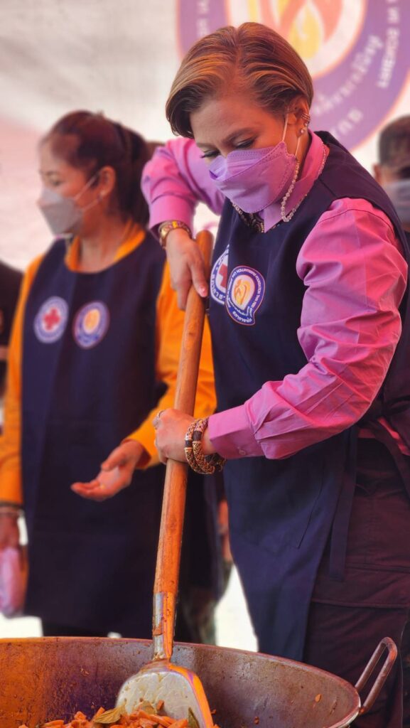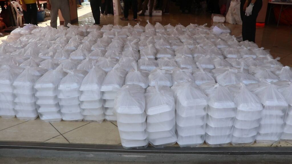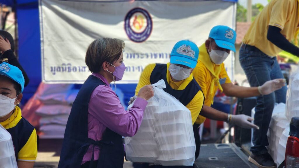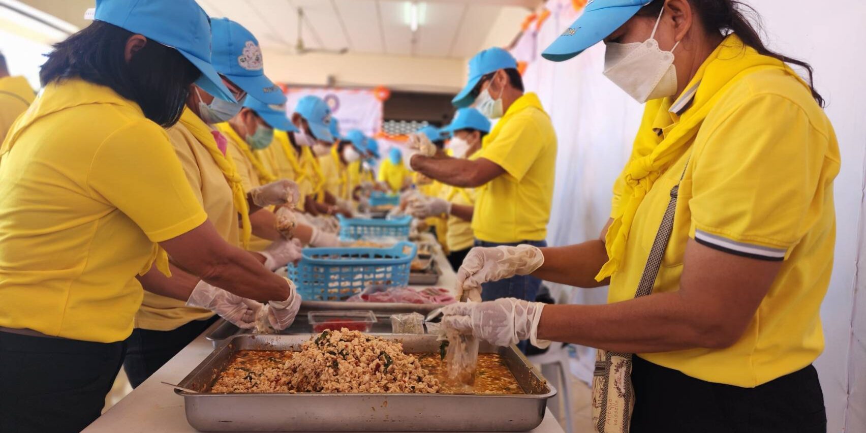 มูลนิธิอาสาเพื่อนพึ่ง (ภาฯ) ยามยาก สภากาชาดไทย ให้การสนับสนุนรถประกอบอาหาร พร้อมบุคลากรปฏิบัติหน้าที่ในการประกอบอาหารเพื่อแจกจ่ายให้กับประชาชนที่ประสบอุทกภัยในพื้นที่ตำบลทับยา ตำบลประศุก ตำบลอินทร์บุรี ตำบลท่างาม ตำบลชีน้ำร้าย อำเภออินทร์บุรี ตำบลวิหารขาว อำเภอท่าช้าง จังหวัดสิงห์บุรี ซึ่งดำเนินการระหว่างวันที่ 12 – 16 ตุลาคม 2565 วันนี้ดำเนินการวันที่ 2 ประกอบด้วยเมนู ข้าวสวย ผัดพริกเผาหมูยอ+ไข่ต้มและข้าวสวยผัดกระเพราไก่+ไข่ต้ม รวมทั้งสิ้น 12,500 กล่อง