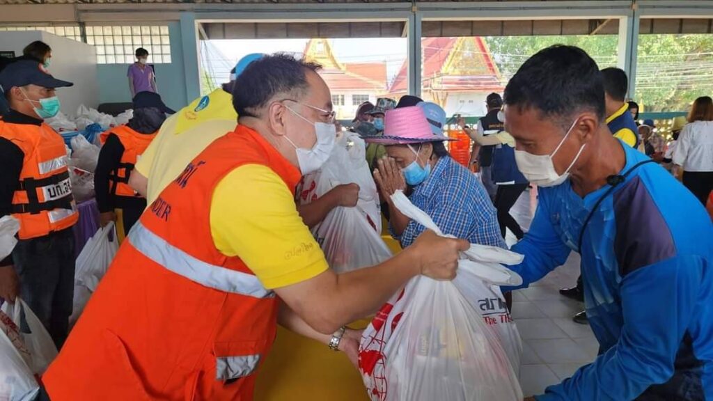 นายสุพจน์ ยศสิงห์คำ ผู้ว่าราชการจังหวัดสิงห์บุรีและคณะกรรมการเหล่ากาชาดจังหวัดสิงห์บุรี พร้อมด้วยหัวหน้าส่วนราชการ ลงพื้นที่ตรวจเยี่ยม ให้กำลังใจมอบเครื่องอุปโภค บริโภค (ชุดธารน้ำใจ สภากาชาดไทย) ให้แก่ราษฎรที่ประสบอุทกภัยในพื้นที่ อำเภออินทร์บุรี จำนวน ๑,๑๑๘ ชุด ณ บริเวณ เทศบาลตำบลทับยา ตำบลทับยา อำเภออินทร์บุรี จังหวัดสิงห์บุรี โดยมีนายอำเภอ ปลัดอำเภอ ผู้บริหารส่วนท้องถิ่นและเจ้าหน้าที่ฝ่ายปกครองในพื้นที่ดูแลและอำนวยความสะดวกและร่วมลงพื้นที่ด้วย