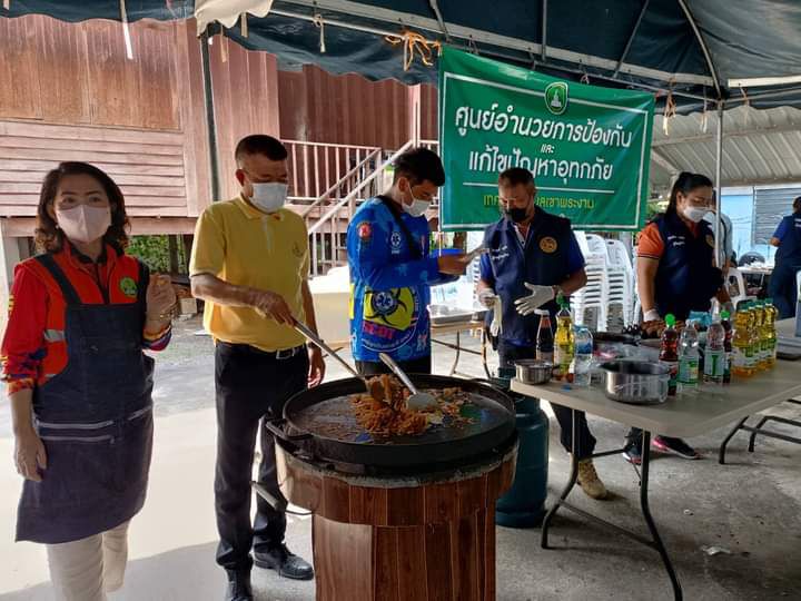 วันศุกร์ที่ 14 ตุลาคม 2565 ว่าที่ร้อยตรี ทรงพล แป้นแก้ว นายอำเภอเมืองลพบุรี พร้อมด้วย นายพูลสวัสดิ์ ถือคง นายกเทศมนตรีตำบลเขาพระงาม คณะผู้บริหาร หัวหน้าส่วนราชการ กำนัน ผู้ใหญ่บ้าน ร่วมประชุมวางแผนแก้ไขปัญหาสถานการณ์อุทกภัยในพื้นที่ตำบลเขาพระงาม และร่วมประกอบอาหาร (ผัดไทย) ที่ได้รับการสนับสนุนวัตถุดิบ เพื่อแจกจ่ายให้กับผู้ประสบอุทกภัย ณ ศูนย์อำนวยการป้องกันและแก้ไขปัญหาอุทกภัย เทศบาลตำบลเขาพระงาม