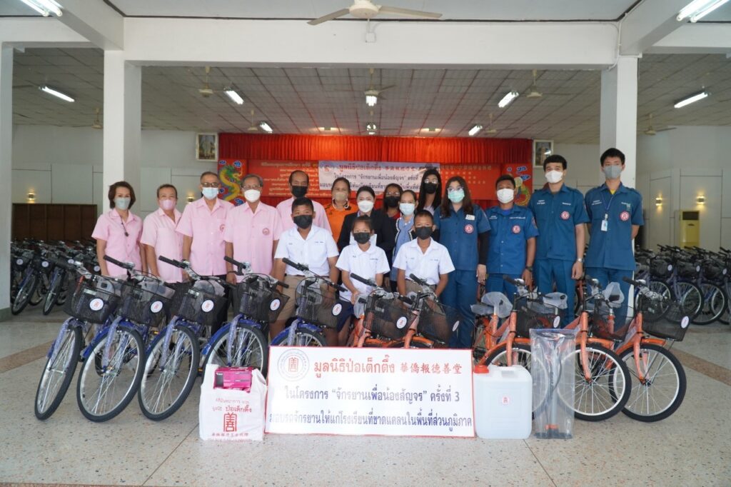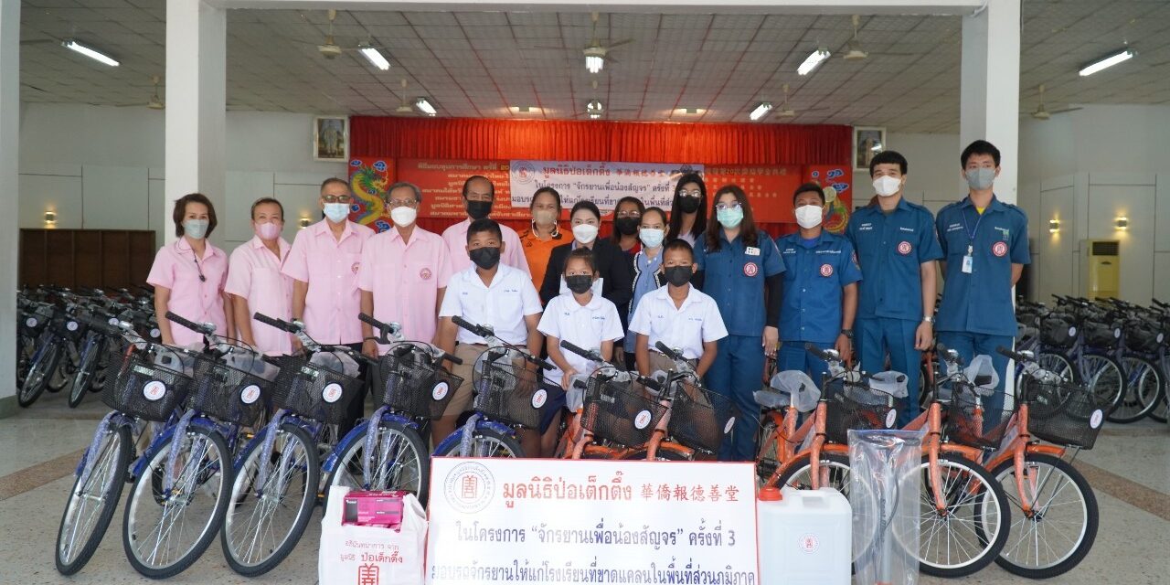 ระหว่างวันที่ 14 – 17 ตุลาคม 2565 มูลนิธิป่อเต็กตึ๊ง นำโดย นางสาวศุภรัตน์ สมบัติเจริญไทย รักษาการหัวหน้าแผนกส่งเสริมการศึกษาและอาชีพ ฝ่ายสังคมสงเคราะห์ นำทีมลงพื้นที่มอบรถจักรยาน ให้กับโรงเรียนในพื้นที่ภาคเหนือ รวม 4 จังหวัด ประกอบด้วย จังหวัดลำปาง สุโขทัย พิษณุโลก และเพชรบูรณ์ ที่มีเยาวชนประสบปัญหาในด้านการเดินทางไปและกลับโรงเรียนด้วยความยากลำบาก ภายใต้โครงการจักรยานเพื่อน้องสัญจร ครั้งที่ 3 ประจำปี 2565 รวมจำนวนโรงเรียนทั้งสิ้น 40 แห่ง รถจักรยาน รวม 600 คัน พร้อมมอบหน้ากากอนามัย แอลกอฮอล์ รวมถึงมอบค่าพาหนะให้กับโรงเรียนที่เดินทางมารับ รวมงบประมาณทั้งสิ้น 1,079,545 บาท (หนึ่งล้านเจ็ดหมื่นเก้าพันห้าร้อยสี่สิบห้าบาทถ้วน) เพื่อให้เด็กนักเรียนสามารถใช้จักรยานเดินทางมาโรงเรียนได้อย่างสะดวก อีกทั้งยังเป็นการส่งเสริมให้เด็กนักเรียนได้ออกกำลังกาย เรียนรู้กฎจราจร เรียนรู้การแบ่งปัน รวมถึงการดูแลรักษาสิ่งของส่วนรวมและใช้ประโยชน์ได้อย่างถูกต้อง โดยเมื่อเด็กนักเรียนจบการศึกษา จักรยานจะถูกส่งต่อให้แก่เด็กนักเรียนในรุ่นต่อไป โดยมี คุณครู และตัวแทนนักเรียนจากโรงเรียนต่างๆ ร่วมในพิธี พร้อมด้วย สมาคม/มูลนิธิแต่ละจังหวัดเป็นผู้ประสานงานและร่วมในพิธี