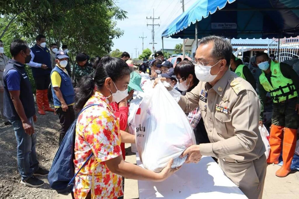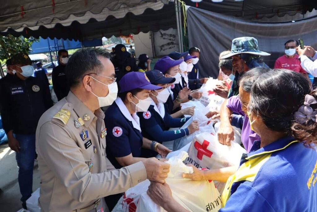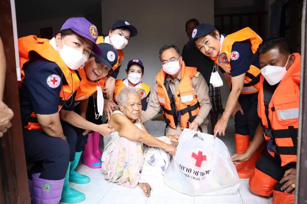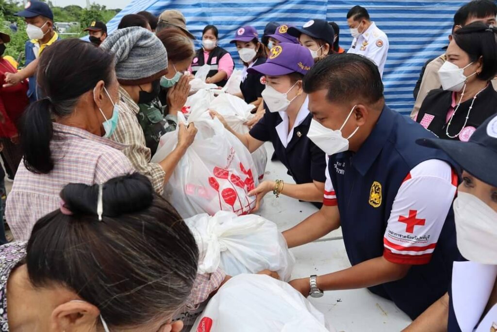วันที่ 17 ตุลาคม 2565 เวลา 09.30 น. นายสุพจน์ ยศสิงห์คำ ผู้ว่าราชการจังหวัดสิงห์บุรี/นายกเหล่ากาชาดจังหวัดสิงห์บุรี พร้อมด้วย นายสมชาย ลีหล้าน้อย รองผู้ว่าราชการจังหวัดสิงห์บุรี นายปรัชญา เปปะตัง ปลัดจังหวัดสิงห์บุรี/เลขานุการเหล่ากาชาดจังหวัดสิงห์บุรี นางจิราภรณ์ กองเงิน นางเลียม ฉิมพันธ์ นางสาวนัยนา ศรีเร รองนายกเหล่ากาชาดจังหวัดสิงห์บุรี นางภรณี ธนาคมานุสรณ์ คณะกรรมการเหล่ากาชาดจังหวัดสิงห์บุรี นายสมชาย วุฒิชัยกุล นายอำเภอท่าช้าง/นายกกิ่งกาชาดอำเภอท่าช้าง คณะกรรมการเหล่ากาชาดจังหวัดสิงห์บุรี ปลัดอำเภอ ผู้บริหารท้องถิ่น กำนัน ผู้ใหญ่บ้าน และเจ้าหน้าที่เหล่ากาชาดจังหวัดสิงห์บุรี ได้ลงพื้นที่ตรวจเยี่ยม ให้กำลังใจ และมอบเครื่องอุปโภค บริโภค (ชุดธารน้ำใจ สภากาชาดไทย) ให้แก่ประชาชนที่ได้รับความเดือดร้อนจากอุทกภัยในพื้นที่อำเภอท่าช้าง และอำเภอค่ายบางระจัน จังหวัดสิงห์บุรี ดังนี้